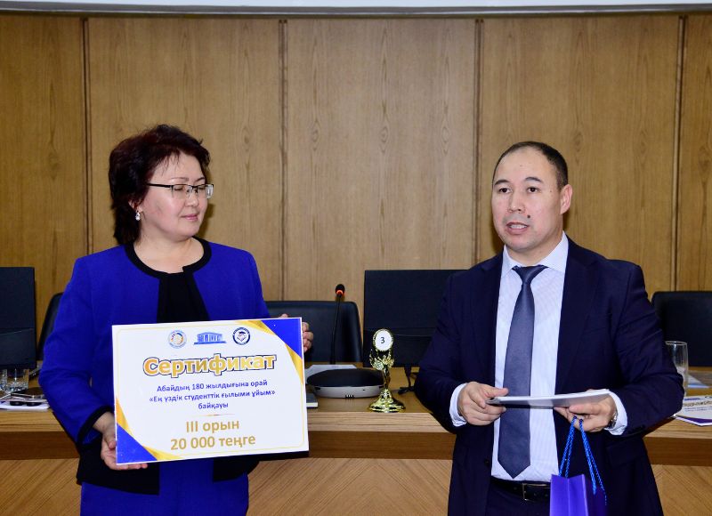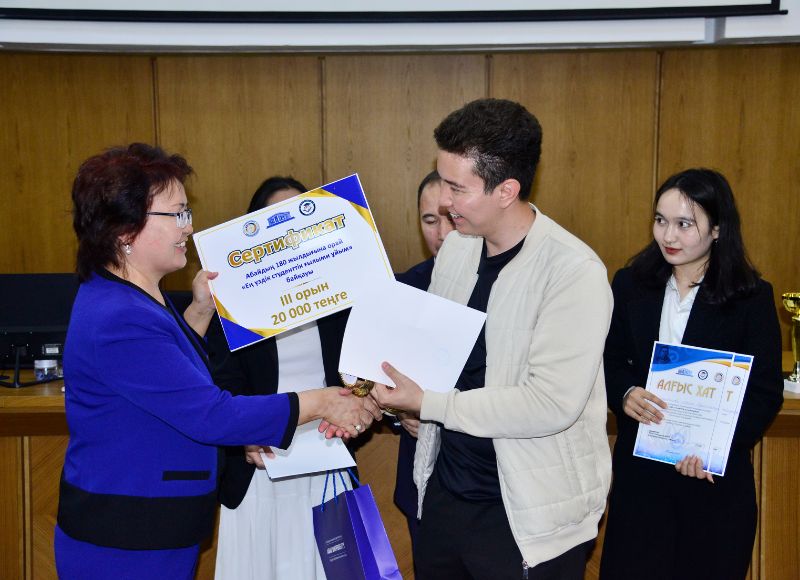 Байқау қатысушылары мен жүлделі орын иегерлеріне Басқарма төрағасы-ректордың Алғыс хаттары, дипломдары мен қаржылай сыйлық жүлде қорлары табысталды.