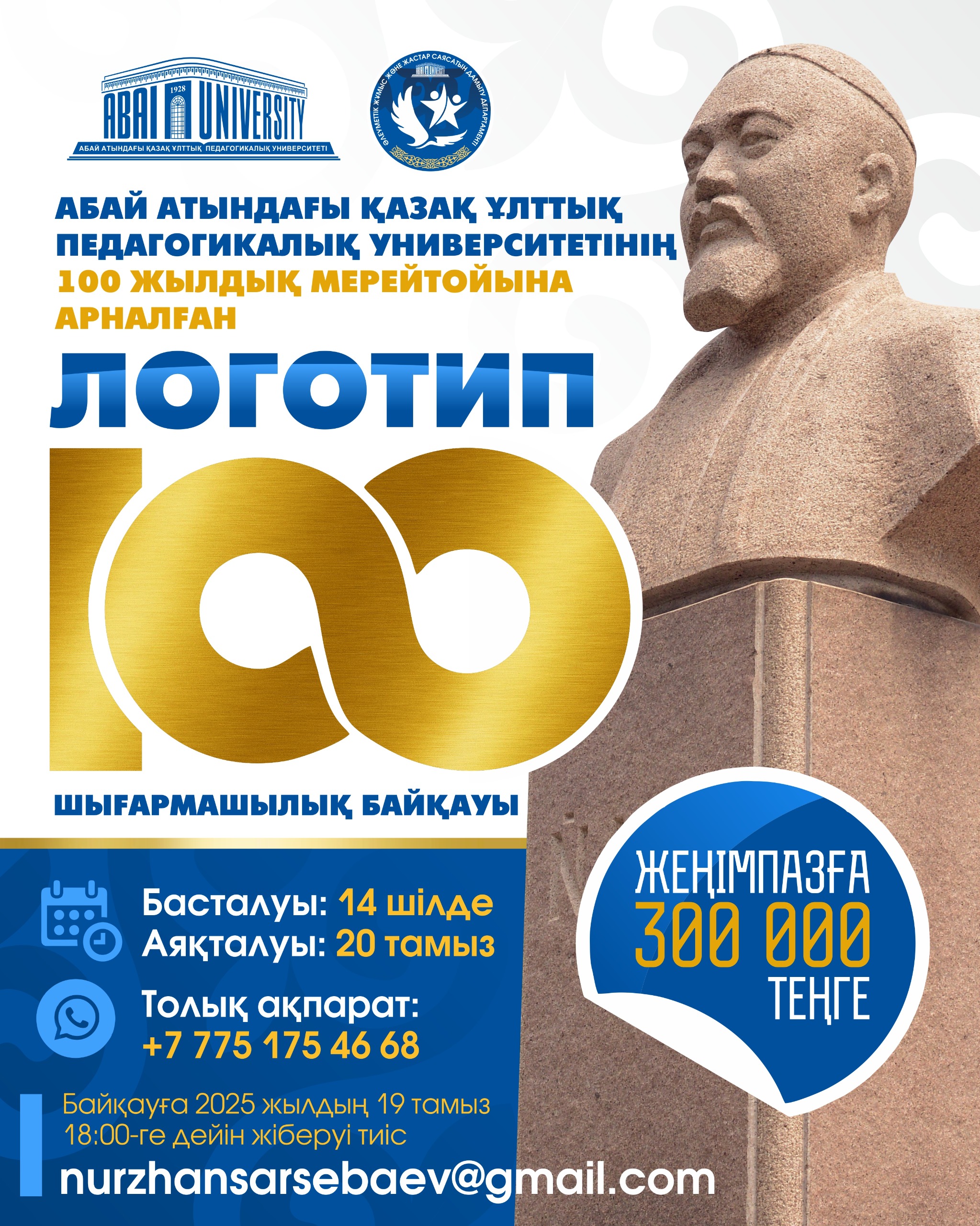 Абай атындағы Қазақ ұлттық университеті 2025 жылғы 14 шілде мен 20 тамыз аралығында өзінің 100 жылдық мерейтойына арналған «Логотип-100» шығармашылық байқауын өткізеді.
