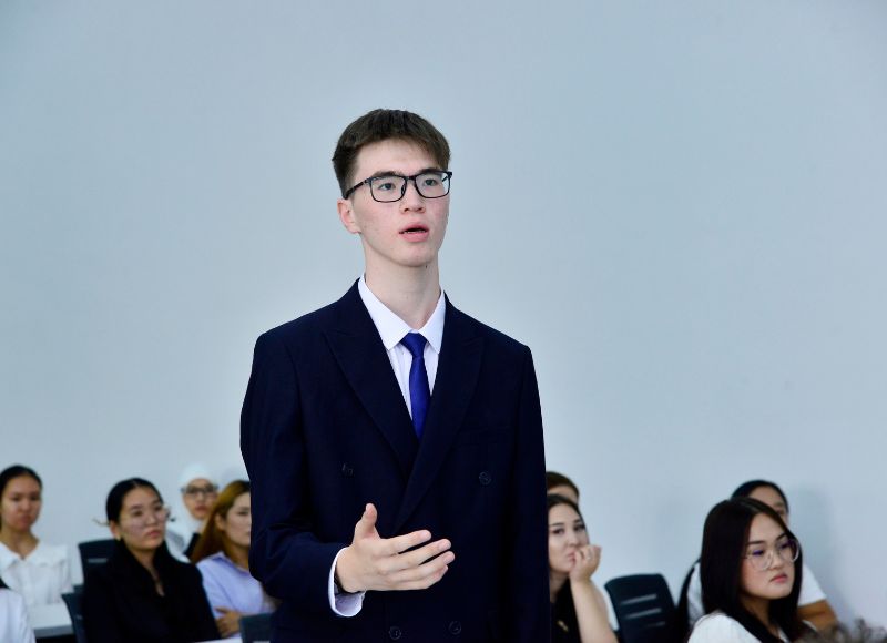 Шара соңында университет ректоры 1-курс студенттеріне арналған қоғамдық дәрісін оқыды.