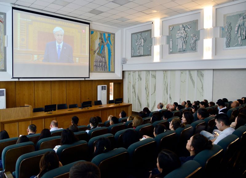 АБАЙ УНИВЕРСИТЕТІНІҢ ҰЖЫМЫ ПРЕЗИДЕНТ ЖОЛДАУЫН ТІКЕЛЕЙ ЭФИРДЕ ТЫҢДАДЫ