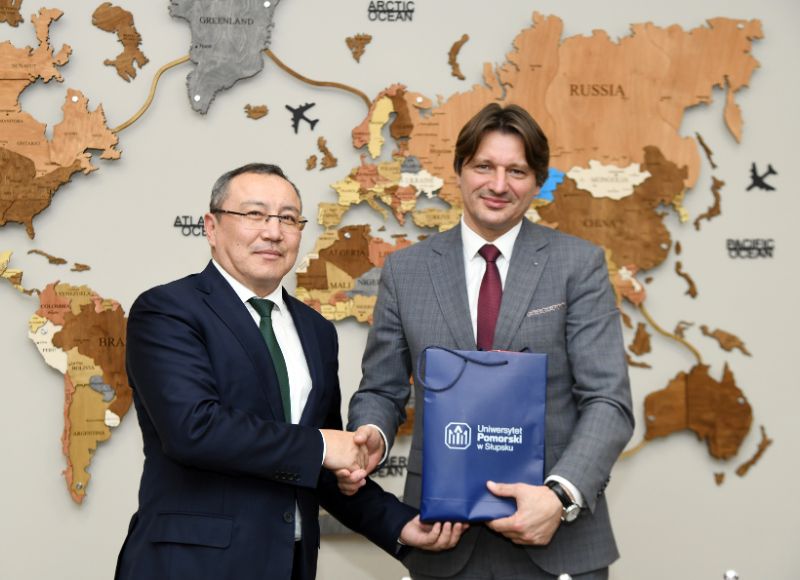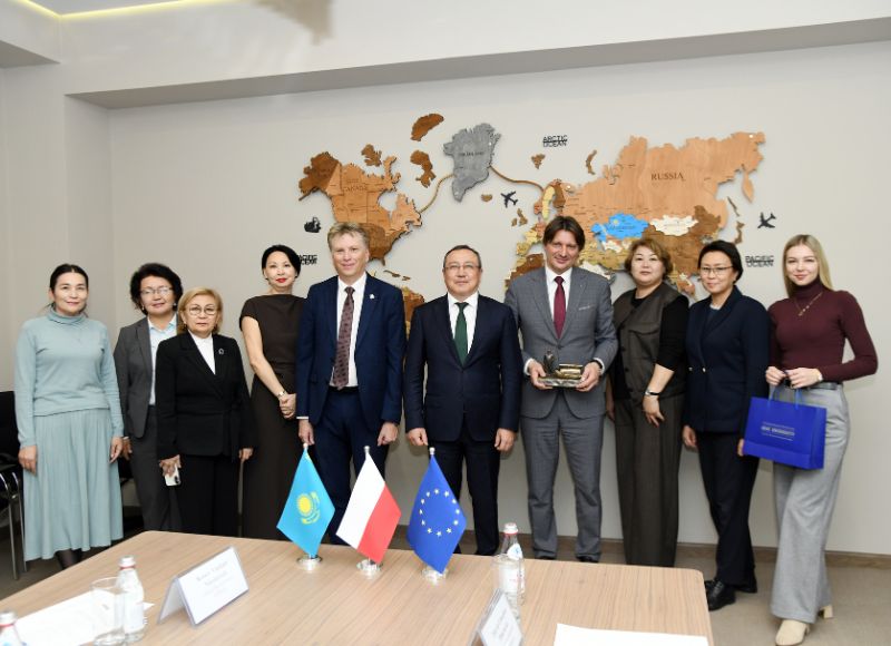 19.11.2025 ПОЛЬШАНЫҢ УНИВЕРСИТЕТІНЕН РЕСМИ ДЕЛЕГАЦИЯ КЕЛДІ Бүгін Абай атындағы Қазақ ұлттық педагогикалық университетінің Басқарма төрағасы-Ректор Болат Тілеп Польшаның Слупск қаласындағы Померан университетінен келген ресми делегацияны қабылдады. Бұл екіжақты кездесу екі университет ынтымақтастығының 10 жылдығына арналып отыр. Померан университетінің делегациясын ректор Збигнев Осадовский бастап келді. Сонымен қатар, ресми делегация құрамында Студенттер ісі жөніндегі кеңсе басшысы Урсула Севьерка-Повельска, Померан университеті Жарнама жөніндегі маманы Елизавета Окунькова және Слупск қаласындағы Абай атындағы қазақ мәдениеті мен ғылымы орталығының директоры Аманкүл Қазмағамбетова бар. Ал Абай университеті тарапынан Басқарма төрағасы-Ректор Болат Тілеп, Академиялық қызмет жөніндегі проректор Бану Нарбекова, Стратегия және интернационалдандыру жөніндегі проректор Айгүл Искакова, Білім беру бағдарламаларын талдау департаментінің директоры Нұржамал Ошанова, Ғылым департаментінің директоры Марфуға Абсатова, Физика кафедрасының меңгерушісі Владимир Косов және Халықаралық бағдарламалар және ынтымақтастық бөлімінің басшысы м.а. Бекзат Кульбаев қатысты. Кездесу барысында университеттің Басқарма төрағасы-ректор Болат Тілеп сөз алып, екі университет арасындағы ынтымақтастыққа 10 жыл толуымен құттықтады. Жылдар бойы қалыптасқан бұл сенім мен серіктестіктің алда да кеңейе беретініне сенім білдірді. Тараптар қосдипломды бағдарламаларды одан әрі дамыту, бірқатар мамандықтар бойынша бірлескен білім беру бағдарламаларының аясын кеңейту және ғылыми ынтымақтастықты тереңдету мәселелерін талқылады. Померан университетінің ректоры Абай университеті базасында Польша мәдениеті мен ғылымы орталығын ашу туралы ұсыныс білдірді. ҚазҰПУ басшылығы бұл ұсынысты қолдап, орталықты құруға жан-жақты қолдау көрсететінін жеткізді. Абай және Померан университеттерінің ғылыми-академиялық әріптестігі 2012 жылдан бастау алады. Нақты 2015 жылы ынтымақтастық туралы келісімшартқа қол қойылып, содан бері 200-ден астам білім алушымыз Польшада семестрлік білім алып, тағылымдамадан өтті. 2017 жылы «Орыс тілі мен әдебиеті» және «Бизнестегі және туризм саласындағы орыс тілі» мамандықтары бойынша қосдипломды бағдарлама іске қосылды. Бүгінге дейін Абай университетінің 28 студенті еуропалық үлгідегі қос диплом алса, осы оқу жылында тағы бес студент оқуды аяқтайды. 2019 жылы Померан университетінде Абай орталығы ашылып, жыл сайын өткізілетін халықаралық «Абай оқулары» семинары екі ел арасындағы мәдени және ғылыми байланысты бекемдей түскен маңызды алаңға айналып үлгерді. Абай атындағы ҚазҰПУ Баспасөз қызметі