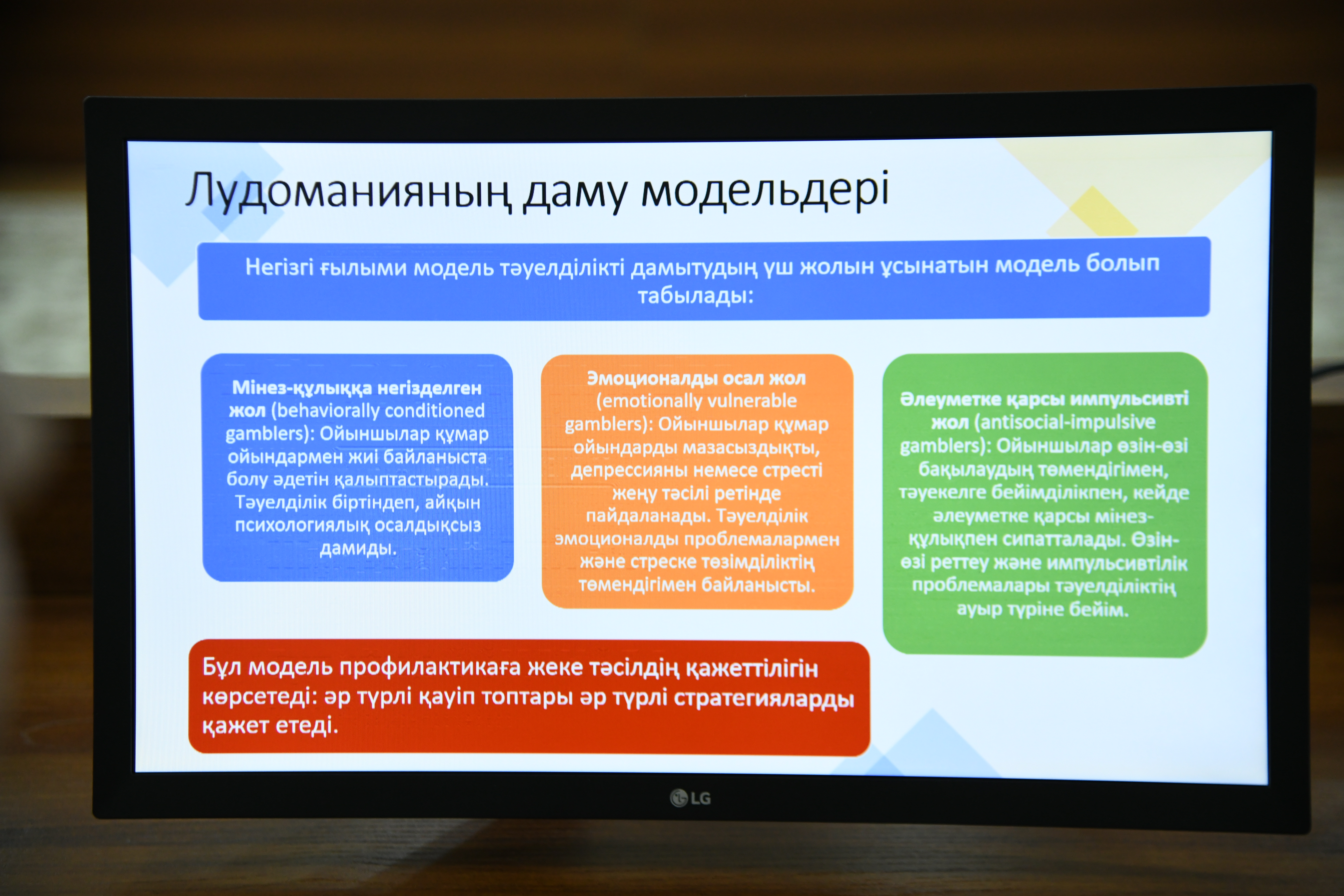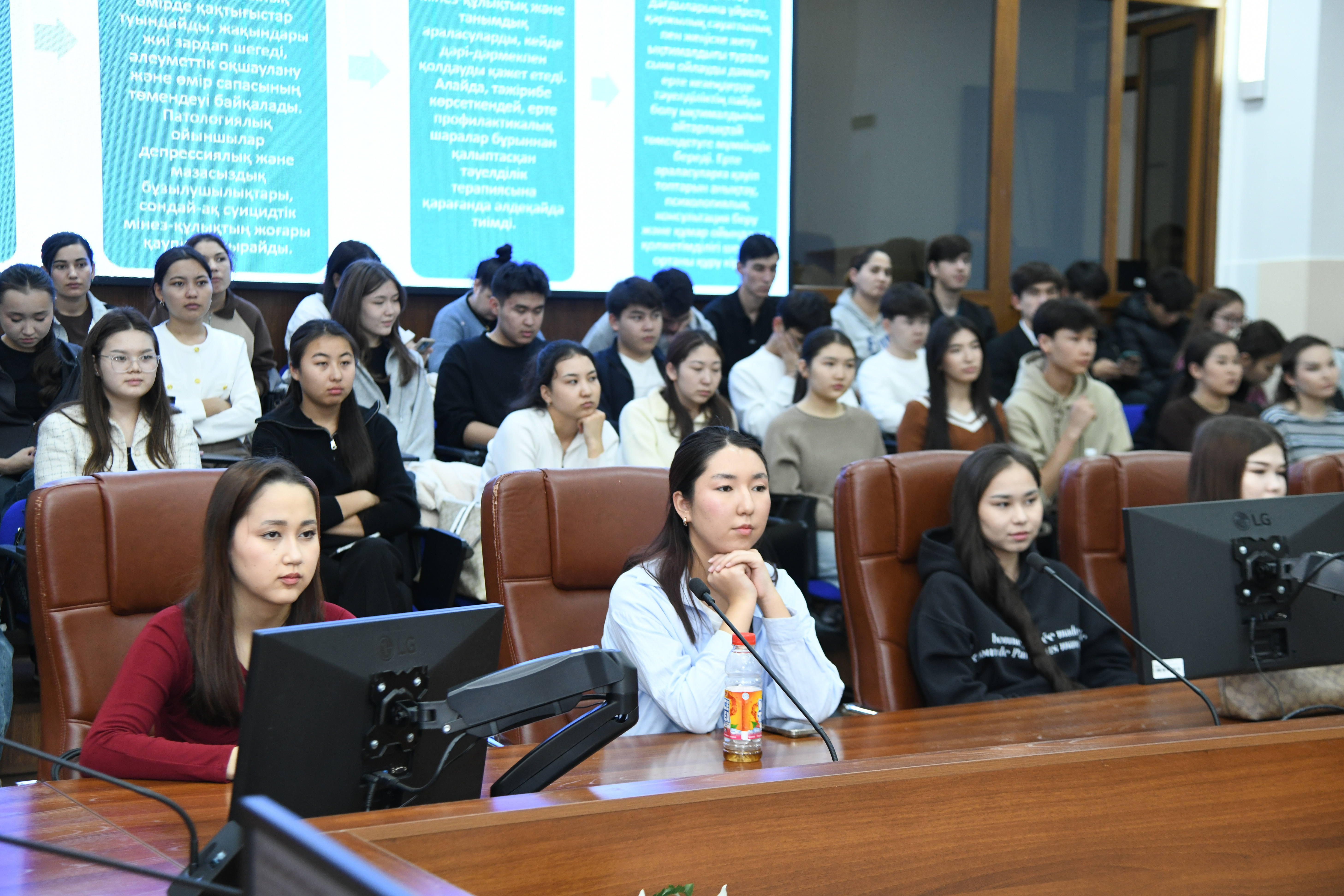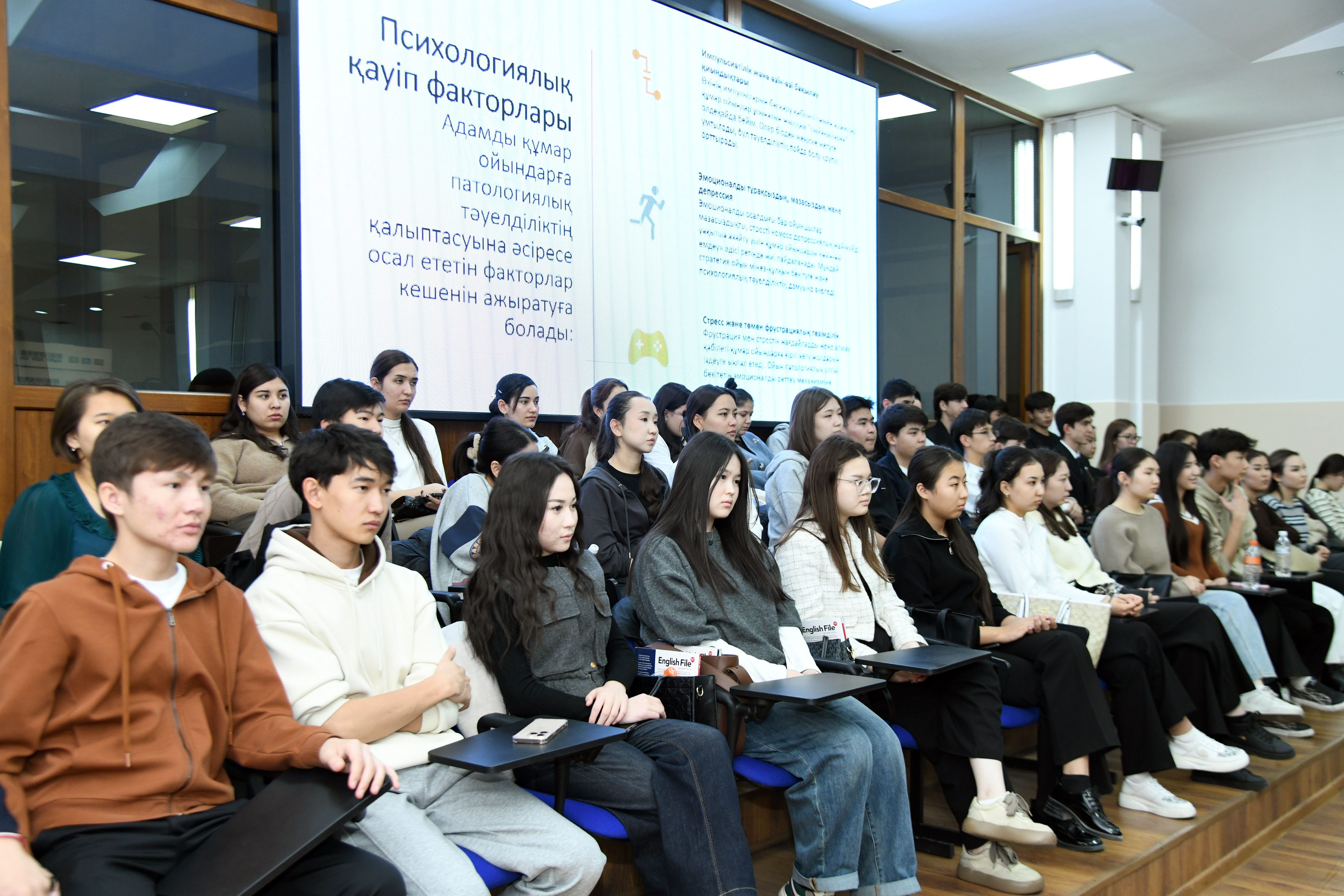Бүгін Абай университетінде «Заң мен тәртіп» бағдарламасының аясында «Дұрыс таңдау – жарқын болашақ кепілі» атты профилактикалық семинар өтті. Республикалық психикалық денсаулық ғылыми орталығының Психологиялық зертхана меңгерушісі Жұлдызай Алиева және заңгер маман, қауымдастырылған профессор Гүлайна Османова құмар ойынның қауіп-қатерін талдады. Қазіргі қоғамның кеселіне айналған лудоманияның психологиялық, әлеуметтік және қаржылық қатерлері туралы студент жастарға түсіндірілді. Мемлекет басшысының бастамасымен жүзеге асырылып жатқан «Заң мен тәртіп» бағдарламасы еліміздің әрбір азаматының қауіпсіз әрі жайлы өмір сүруін көздейді. Әсіресе жастардың құқықтық сауаттылығын арттыру, заң тармақтарын сақтау, қоғамдық қауіпсіздік пен жауапкершілікті түсіндіру аса маңызды. Ойынқұмарлық зияны мен қауіп-қатерін терең түсінбей жатып, жасалатын қателіктен сақтау – баршамызға ортақ міндет. Клиникалық психолог Жұлдызай Алиева бұл мәселенің алдын алу үшін профилактика жүргізудің маңыздылығына тоқталды. – Лудомания профилактикасы өте маңызды. Өйткені құмар ойындарға патологиялық әуестік көбінесе жасырын түрде дамып, салдары айқын болғанда ғана анықталады. Құмар ойынға адамның тәуелділігі оның қолжетімді болғандықтан жылдам жетіледі. Тіпті, кездейсоқ құмар ойынға қатысу біртіндеп тәуелділіктің артуына әкеледі. Сондықтан, профилактика жұмыстары халықты тәуекелдер туралы хабардар етіп, өзін-өзі реттеу дағдыларын дамытуға мүмкіндік береді, – деді Жұлдызай Мұратбекқызы. Ойын құмарлықтың заңнамалық салдары, жастарды қаржылық және құқықтық тәуекелдерден қорғау тетіктері туралы заңгер маман Гулайна Османова баяндама жасады. Еліміздегі заңсыз ойын бизнестерінің белгілері, оған қатысудың жауапкершілігі және адам өз құқығын қорғау жолдары туралы түсіндірді. Қоғамдық кеселмен күресудің де оңай жүзеге аспайтынына мамандар айрықша тоқталды. – Лудоманияны емдеу – бірнеше маманның араласуымен жүзеге асады және тез арада нәтиже бермейді. Тіпті, дәрі-дәрмекті де қолданатын жағдайлар болады. Ол адамның ұйқысын бұзып, тамаққа тәбеті тартпай, мінез-құлқында тез ашуланғыш, өкпелегіштік қасиеттерді өршітуі мүмкін. Кейбір жағдайларда тіпті лудоманияға шалдыққан адамдар өз-өзіне қол жұмсауға дейін барады. Сондықтан, мұндай жаман әдеттен, жылдам ақша табамын деген ойдан әрдайым аулақ болыңыздар, – деді клиникалық психолог. Жиын соңында студенттер сұрақтарына жауап тауып, әлеуметтік желідегі арзан жарнама мен ақшалай сыйлық беретін ойындардан аулақ болу керегін түсінді. Абай атындағы ҚазҰПУ Баспасөз қызметі