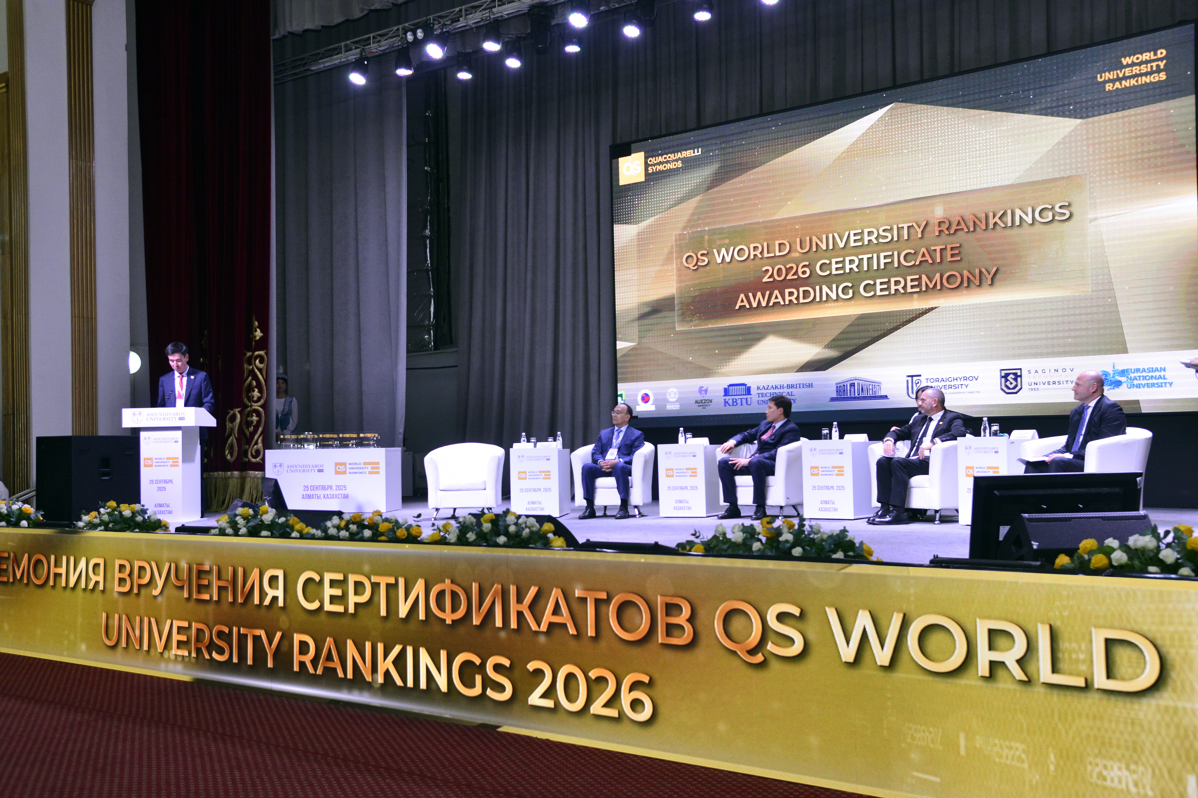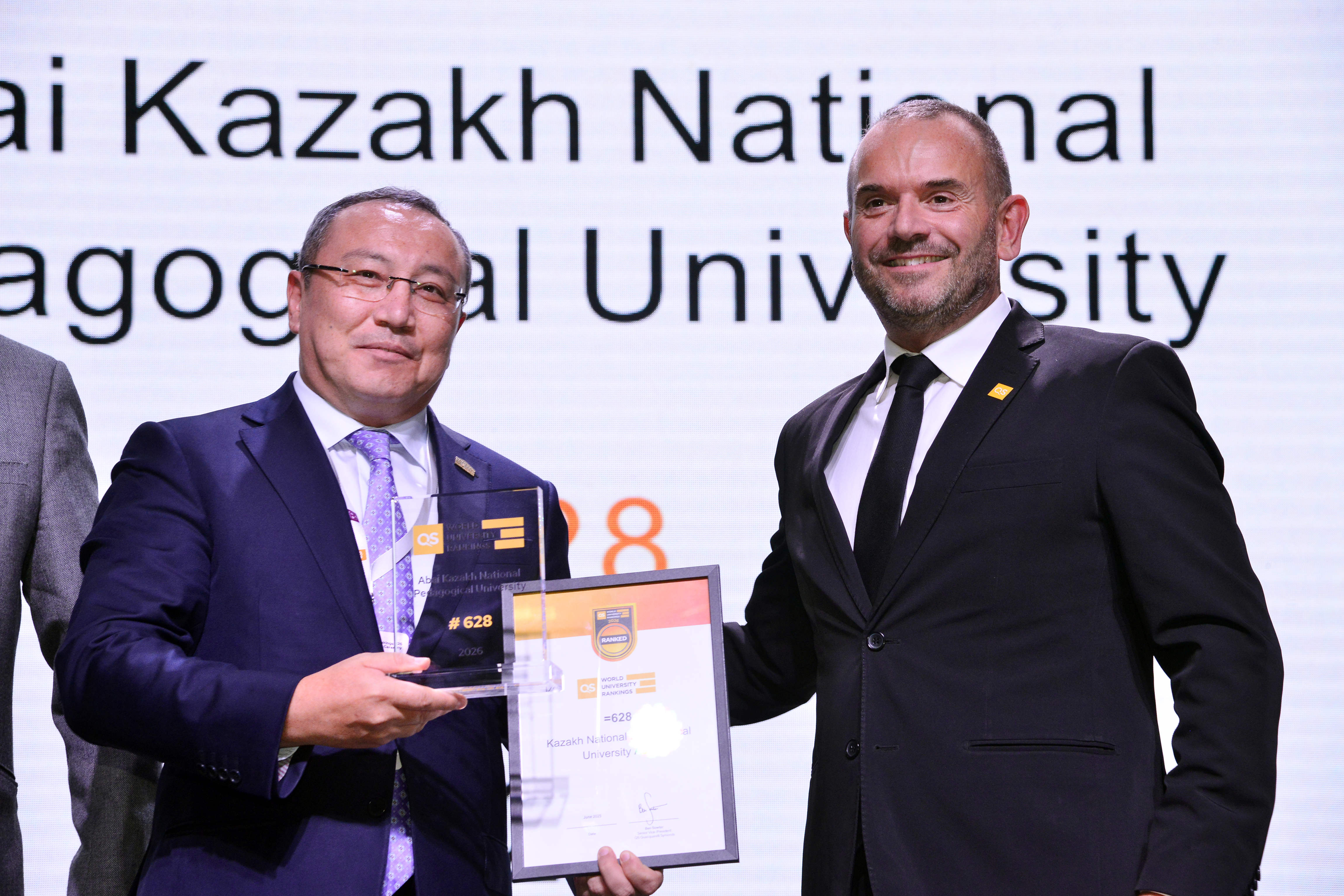 2025 жыл Абай университеті үшін халықаралық кеңістіктегі орны айқындалып, стратегиялық дамуы нақты нәтижелермен бекіген кезең болды. Жаһандық жоғары білім жүйесі цифрландыруға, тұрақты дамуға және халықаралық ықпалдастыққа бет бұрған шақта университет осы үрдістерге сай дамып, Қазақстан мен Орталық Азиядағы жетекші жоғары оқу орындарының бірі ретінде өз орнын нығайтты. Халықаралық рейтингтерге қатысу университеттің білім беру сапасын, ғылыми әлеуетін және жаһандық академиялық қауымдастықтағы беделін арттырудың маңызды факторына айналды. Бүгінде Абай университеті QS, THE, UI GreenMetric және Webometric сияқты әлемдік рейтингтерде бағаланып келеді. «QS World University Rankings – 2025» нәтижесі бойынша университет әлемдік тізімде 628-орынға көтеріліп, үздік 700 университет қатарына енді. Қазақстан университеттері арасында 4-орынды иеленіп, ұлттық деңгейдегі беделін арттырды. «QS Asia University Rankings – 2026» рейтингінде университет Азия бойынша 138-орынға, Қазақстан бойынша 4-орынға, ал Орталық Азия университеттері арасында 5-орынға жайғасты. Абай университеті «QS Stars Rating System» аясында жоғары бағаға ие болып, QS «Five Stars» («Бес жұлдыз») үздік белгісімен марапатталды. Бұл мәртебе университеттің білім беру сапасы, ғылыми-зерттеу қызметі, әлеуметтік жауапкершілігі, интернационалдандыру және басқару тиімділігі бағыттарындағы көрсеткіштерінің халықаралық стандарттарға толық сәйкес келетінін айғақтайды. QS «Бес жұлдыз» белгісі университеттің жаһандық академиялық кеңістіктегі беделін нығайтып, институционалдық дамуының жаңа деңгейге көтерілгенін нақтылайды. Пәндік рейтингтерде де университеттің академиялық әлеуеті айқын көрінді. «QS WUR by Subject – 2025» рейтингінде Education & Training бағыты бойынша университет төртінші жыл қатарынан әлемнің үздік 100 университеті қатарында қалып, Қазақстан бойынша көшбасшы орнын сақтап қалды. Сонымен қатар Arts & Humanities саласы бойынша әлемде 373-орынға, Қазақстанда 3-орынға ие болса, Modern Languages бағыты 101–150 диапазонында, Linguistics саласы 283-орында бағаланды. Тұрақты даму мен экологиялық жауапкершілік бағытында да университет елеулі нәтижелерге жетті. «QS Sustainability – 2026» рейтингінде университет 1101–1150 диапазонында орын алып, Қазақстанның үздік жоғары оқу орындарының қатарына кірді. «UI GreenMetric World University Rankings» нәтижесі бойынша 95 елден 1477 университеттің ішінде Абай университеті әлемнің үздік 500 университеті қатарына еніп, әлемде 422-орынға көтерілді. «Webometric» рейтингінде бір жыл ішінде университеттің 861 орынға өсуі цифрлық ашықтық пен академиялық беделінің артқанын көрсетеді. Академиялық қызметте студенттер контингенті 20 581 адамға жетіп, 2023 жылмен салыстырғанда 127,4 пайыздық өсім тіркелді. Оқытушы-профессорлық құрам 1 219 адам болып, оның 981-і – штаттық қызметкер. Ағылшын тілінде дәріс беретін оқытушылардың үлесі 21,1 пайызға жетіп, университеттің интернационалдандыру бағытының жүйелі түрде дамып жатқанын дәледеді. Халықаралық серіктестік аясындағы қосдипломдық бағдарламалар саны 25-ке артса, ал шетелдік студенттер саны 1 936 адамға жетті, бакалавриаттағы үлесі – 9,72 пайыз. Ғылыми-зерттеу қызметі университеттің педагогикалық зерттеу университетіне айналу бағытындағы дамуын айқындайды. 2025 жылы зерттеулер университет кірісінің 9,5 пайызын құрады, оқытушы-профессорлық құрамның 64,4 пайызы ғылыми жобаларға тартылды. «Scopus» деректер базасында жарияланымдар сан