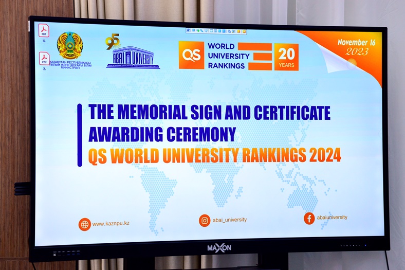 Абай университетінде QS World University Rankings-2024 естелік белгісі мен сертификатын табыстау рәсімі өтті |