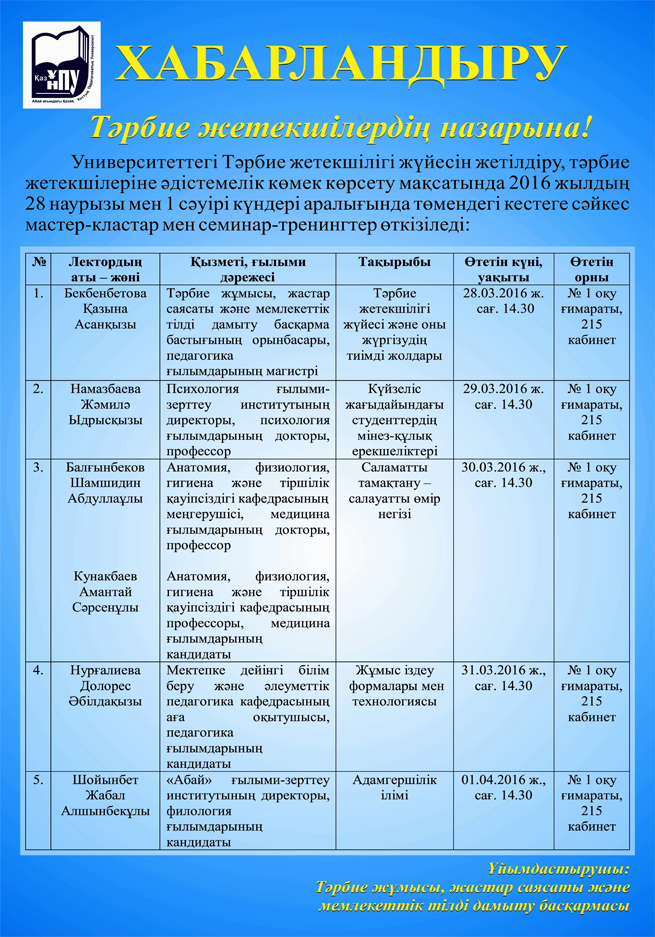 Білім алушыларға арналған ақпарат