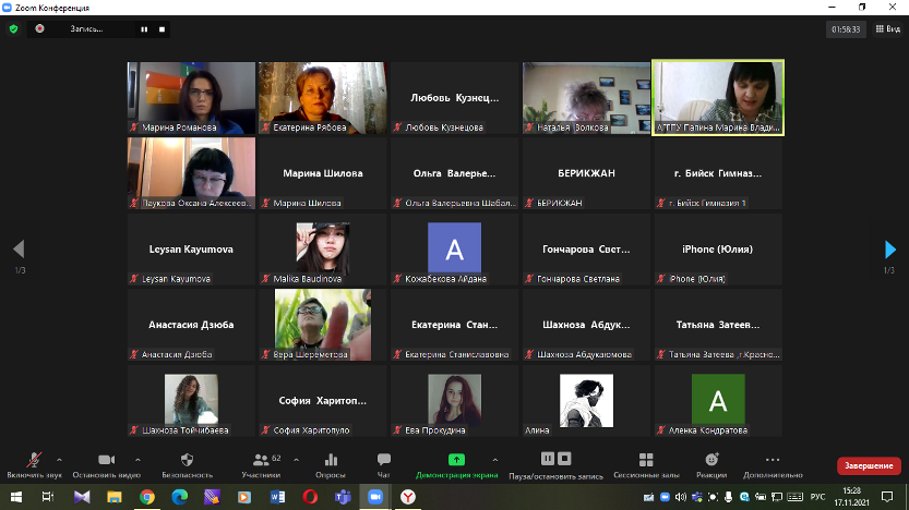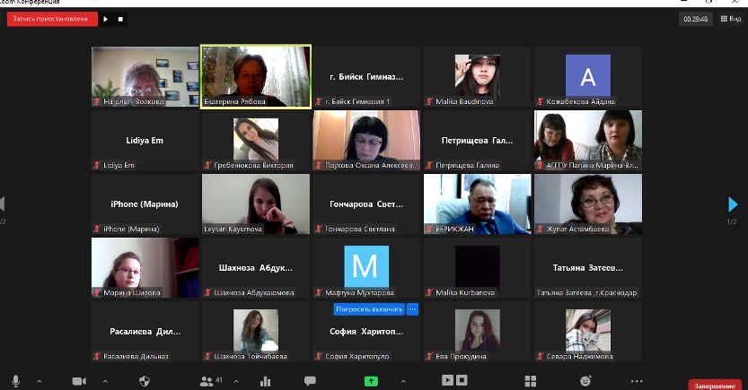 Халықаралық педагогикалық кездесуді Рябова Е.В. ұйымдастырды. Халықаралық педагогикалық кездесудің ұйымдастырушысы іс-шараға белсене қатысқандары үшін барлығына алғыс білдірді. Қатысушылардың барлығына сертификат берілді.
