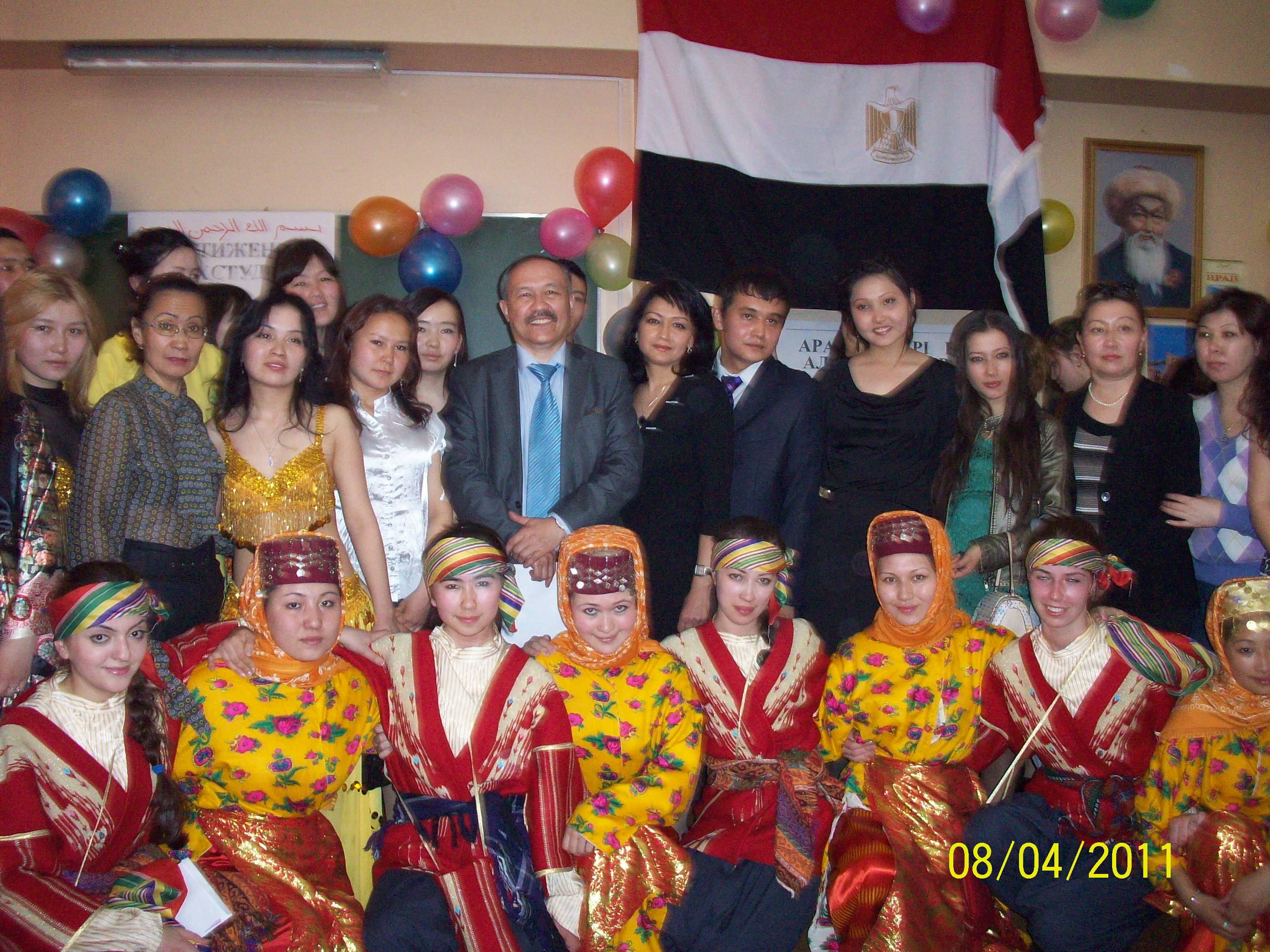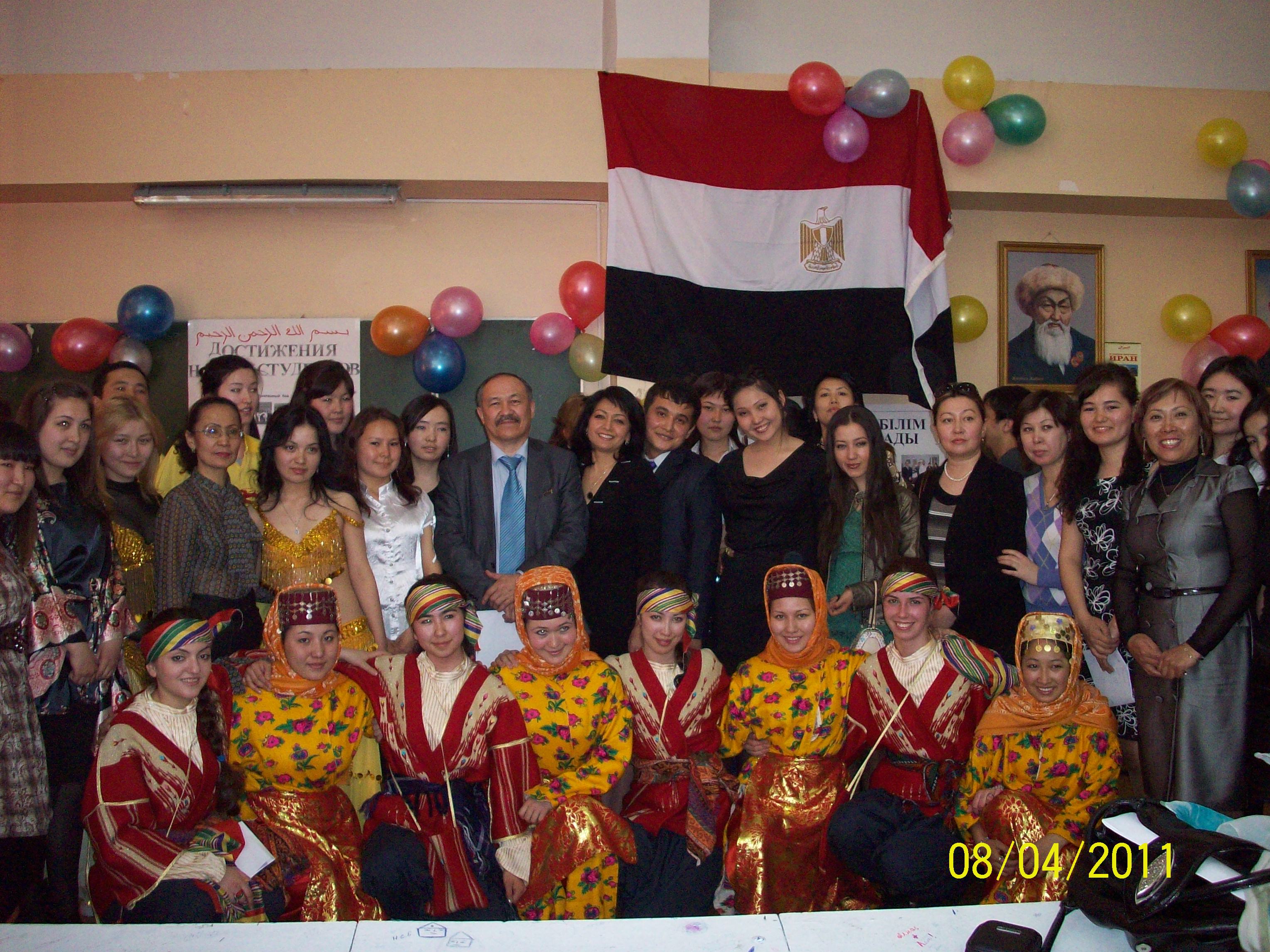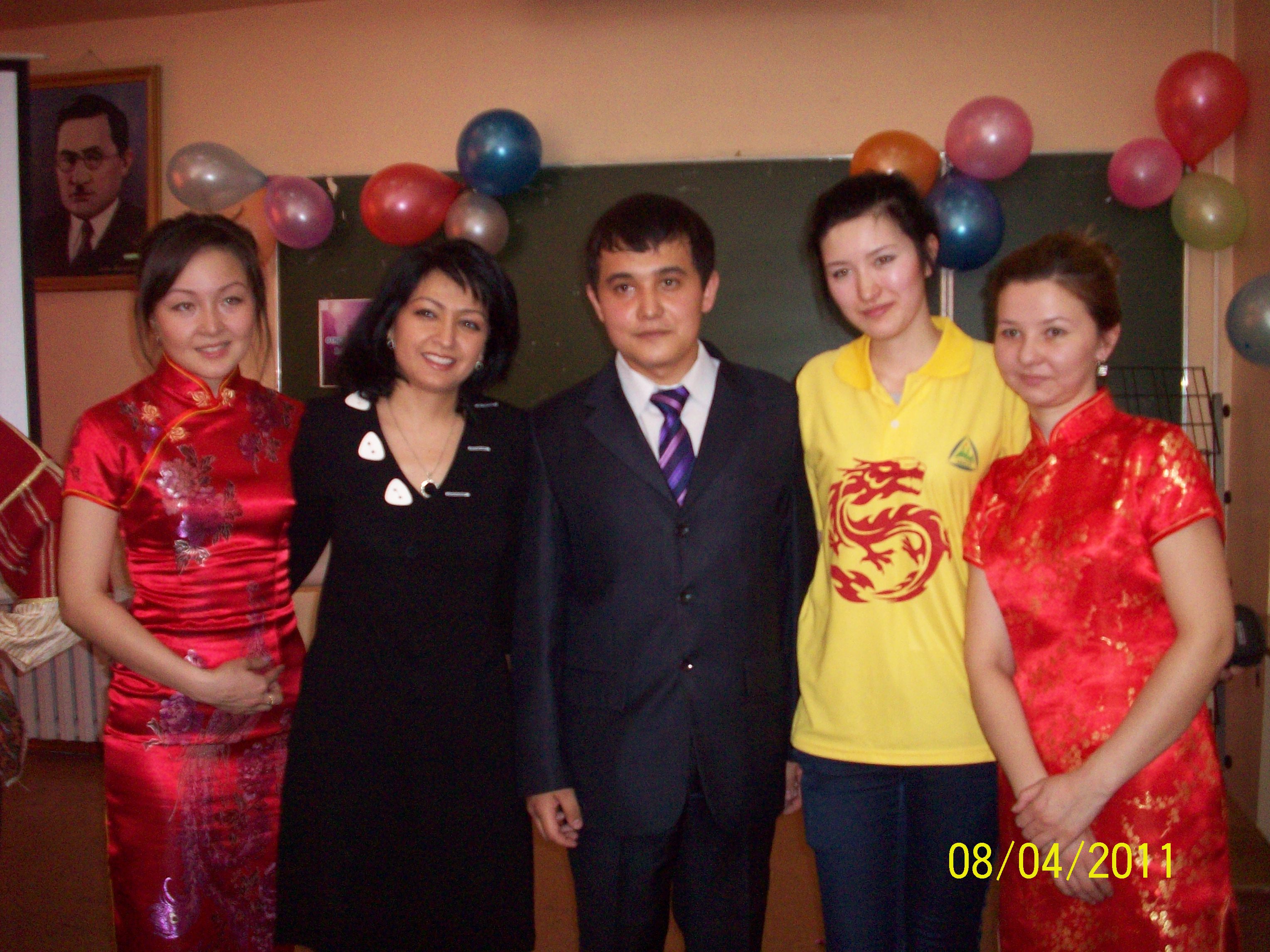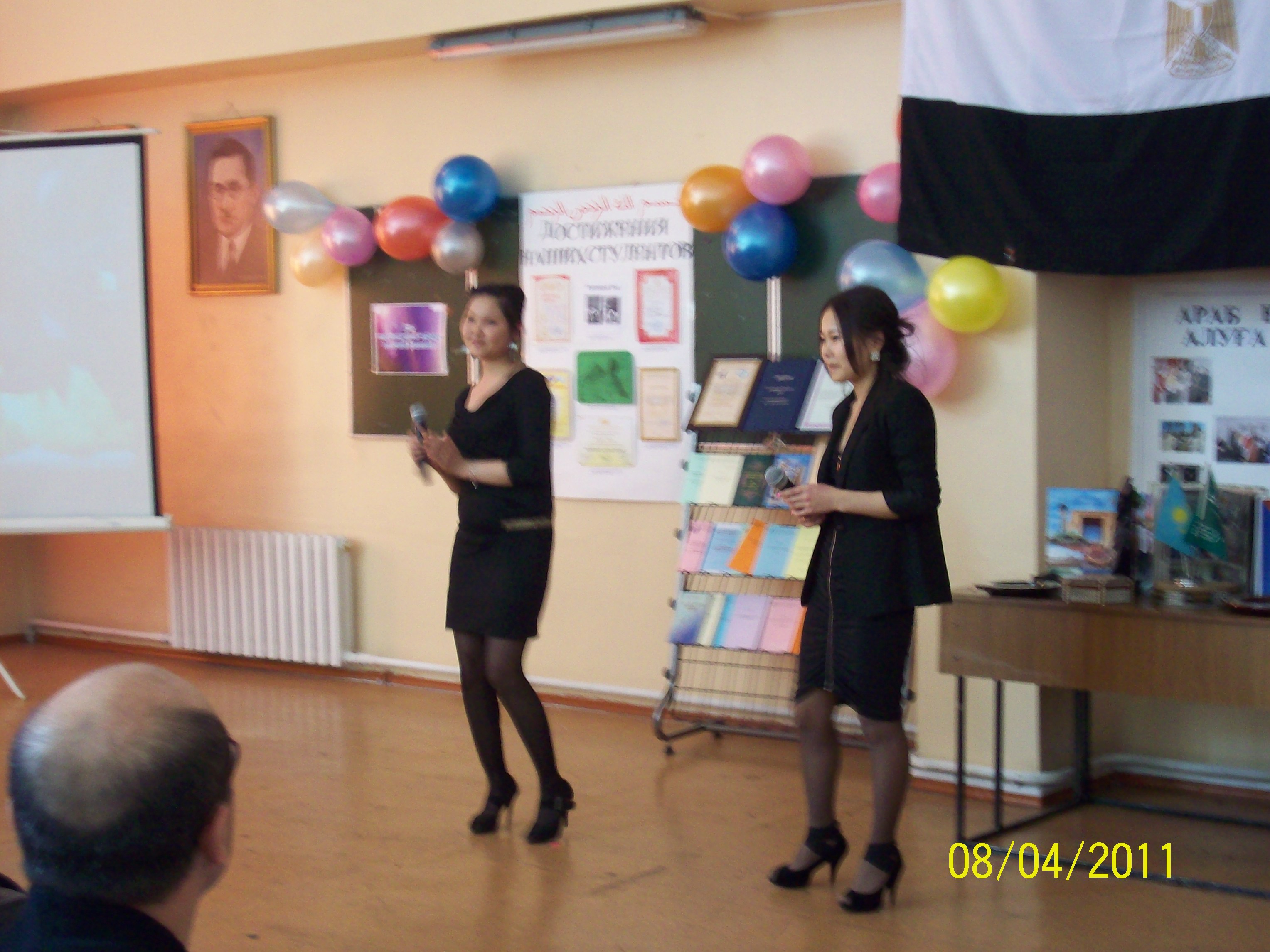 08.04.2011 День восточной филологии. 8 апреля в КазНПУ им.Абая прошёл день открытых дверей кафедры восточной филологии. Кафедра обеспечивает преподавание следующих восточных языков: турецкий, арабский, персидский, китайский, корейский и японский. На филологическом факультете данные языки изучаются в качестве основного. Главные направления научно-исследовательской работы кафедры - история современных восточных языков, стилистика, диалектология, культура речи, методика обучения восточным языкам. На кафедре восточной филологии сложились устойчивые традиции, направленные на поддержание высоких стандартов в области образования и научных исследований, сохранения надлежащего уровня преподавания и соблюдения профессиональной этики, достижения гибкости и последовательности учебных программ. Именно для ознакомления с восточной кафедрой и привлечения абитуриентов, был проведён день открытых дверей. Организатором мероприятия выступила кандидат педагогических наук, доцент Тагиева Н. А. Она проводила отбор талантов среди студентов ВУЗа, готовила сценарий, вместе с учениками придумывала видеосюжеты и викторины. Студенты и преподаватели, словно одна семья - с трепетом ждали этого события. Ведь день открытых дверей - это путь к успеху, как для кафедры восточной филологии, так и для всего университета. И вот день открытых дверей настал. С самого утра, словно пчёлки, все трудились в главном зале ВУЗа. Кто-то надувал шары и украшал аудиторию плакатами и флагами восточных стран, а кто-то повторял слова для выступления и настраивал народные инструменты. К началу праздника зал был полон, приглашённые абитуриенты из 5 школ с интересом поглядывали на активных студентов. Расспрашивали об университете, об учёбе, просили рассказать что-нибудь на языках, которые студенты учат. «Я тоже хочу учить китайский»- с искоркой в глазах сказала одна из школьниц. Быть может, именно день открытых дверей, поможет школьникам определиться с выбором, как профессии, так и университета. Представление - а точнее праздник, именно так хотелось назвать день открытых дверей, потому что атмосфера радости сохранялась на протяжении всех выступлений. Участниками праздника были как студенты, так и преподаватели. Согласно программе, в первую очередь был представлен видеоролик о деятельности КазНПУ им. Абая, где рассказывалась история университета, его заслуги и достижения студентов. Представлен перечень специальностей, анализ работы общеуниверситетских кафедр и факультетов. Это помогло пришедшим школьникам ознакомиться, как с восточной кафедрой, так и с деятельностью всего университета. Музыкальное сопровождение осуществлял фольклорно-этнографический ансамбль университета, под руководством Матбуса Ж.Б. и Бектенбетовой К.А. Студенты всех языковых отделений представили номера на профильных языках, пели песни и танцевали танцы «своих» народов. Отделение китайского языка помимо песен организовали викторину «Китай - Восток - дело тонкое», тем самым проверив, насколько нынешние школьники знакомы с культурой современного Китая. А студенты арабского языка, в свою очередь представили юмористический скетч «Смерть денег», рассмешив публику и окончательно расположив её к себе. В заключении концерта, состоялась фотосессия в праздничных, народных костюмах. День восточной 