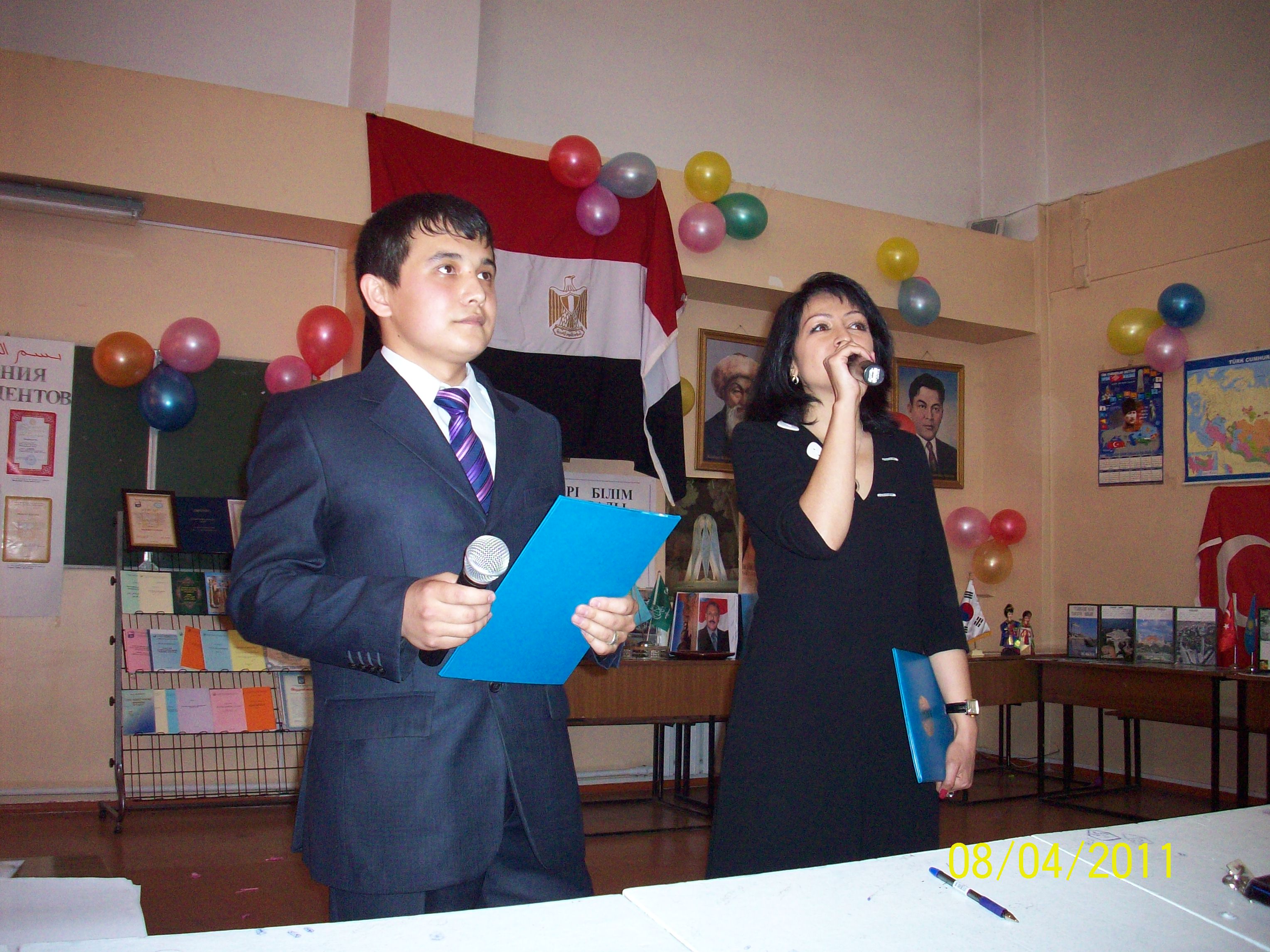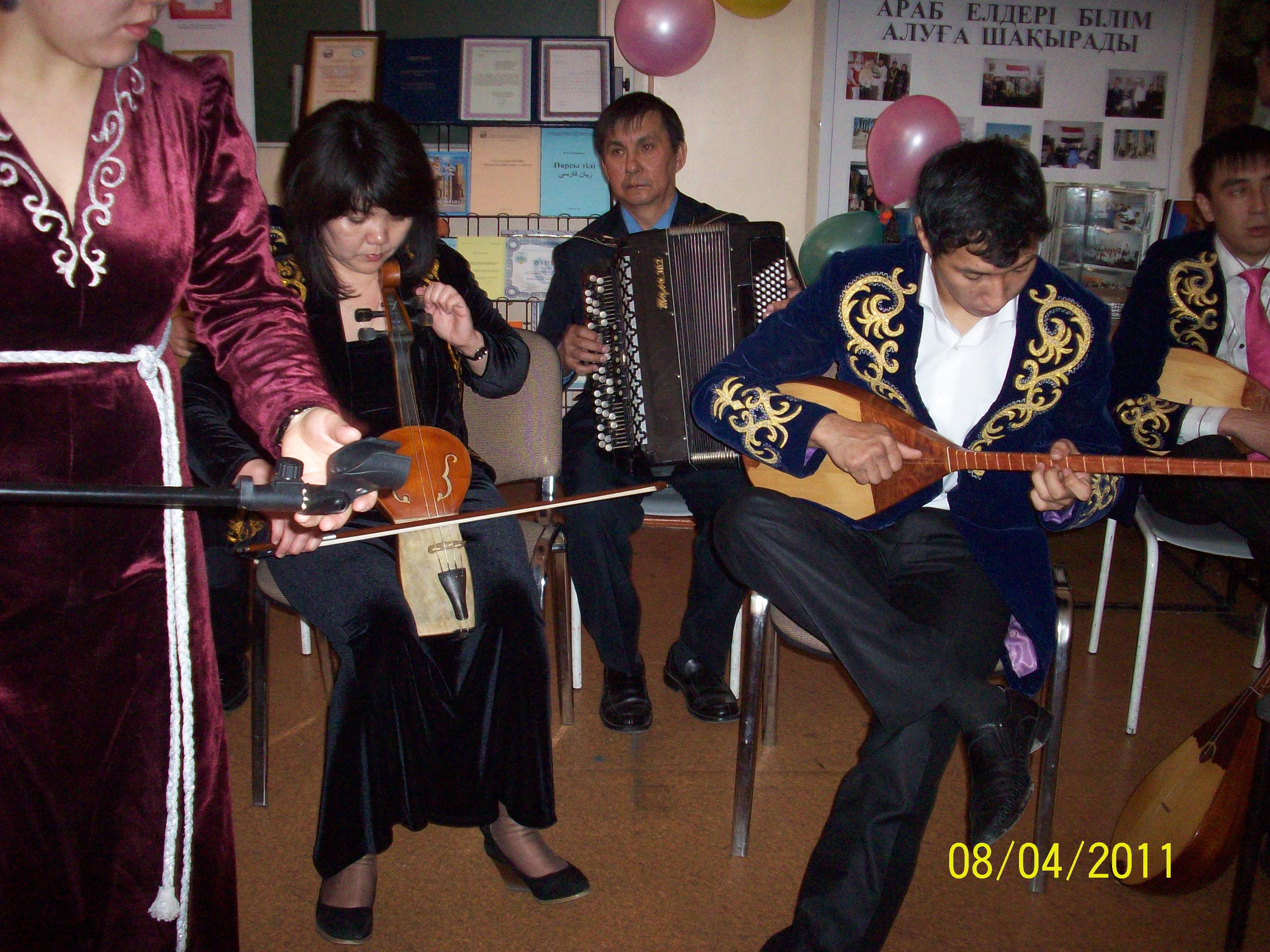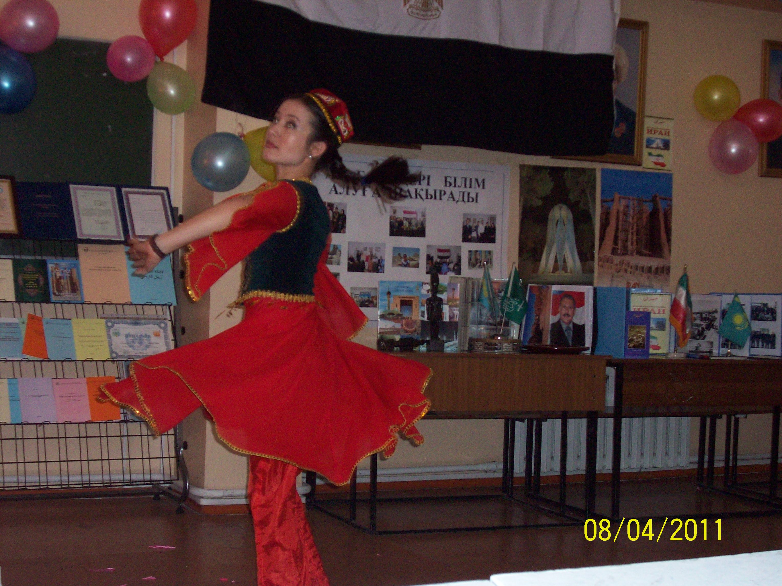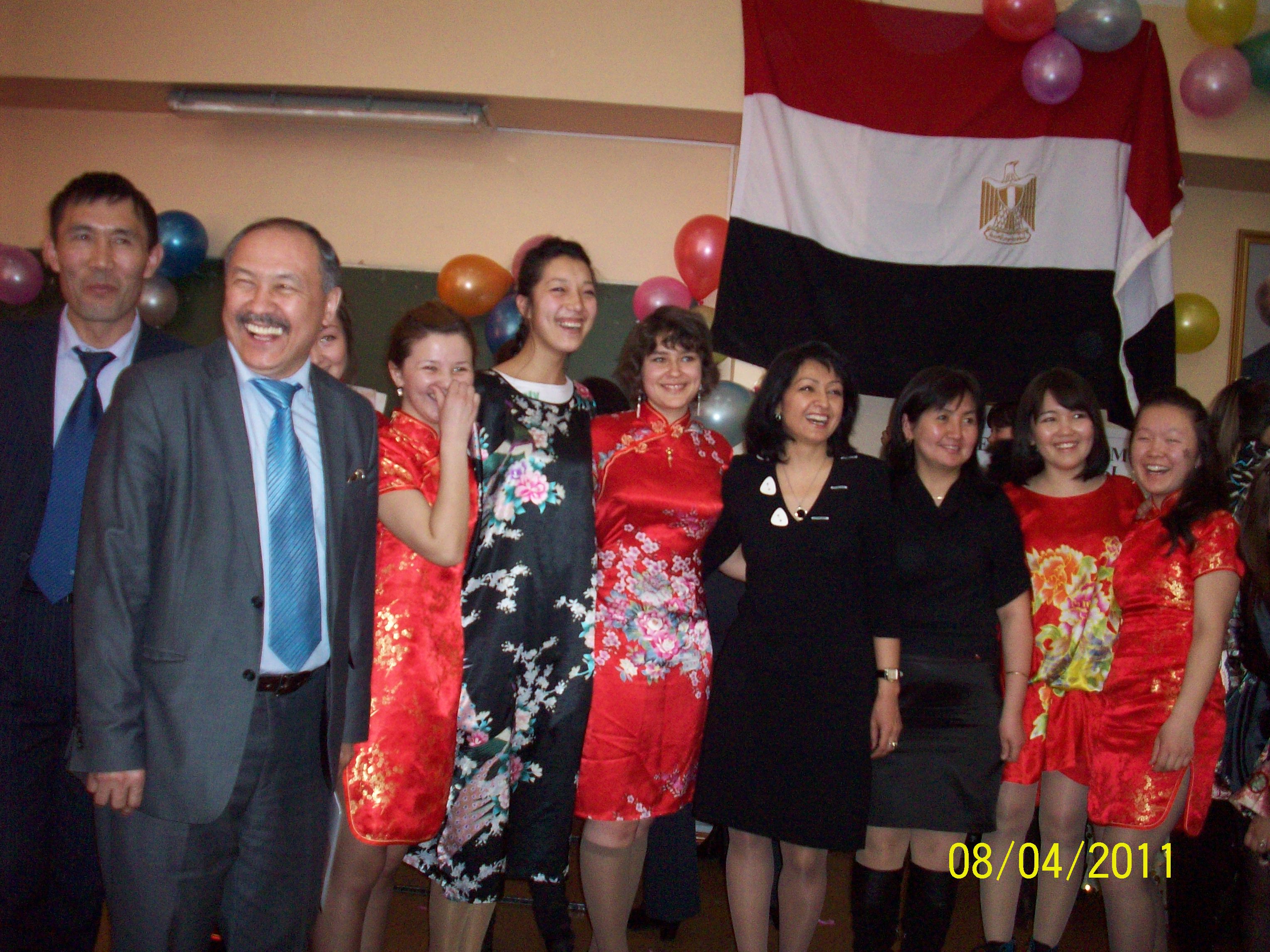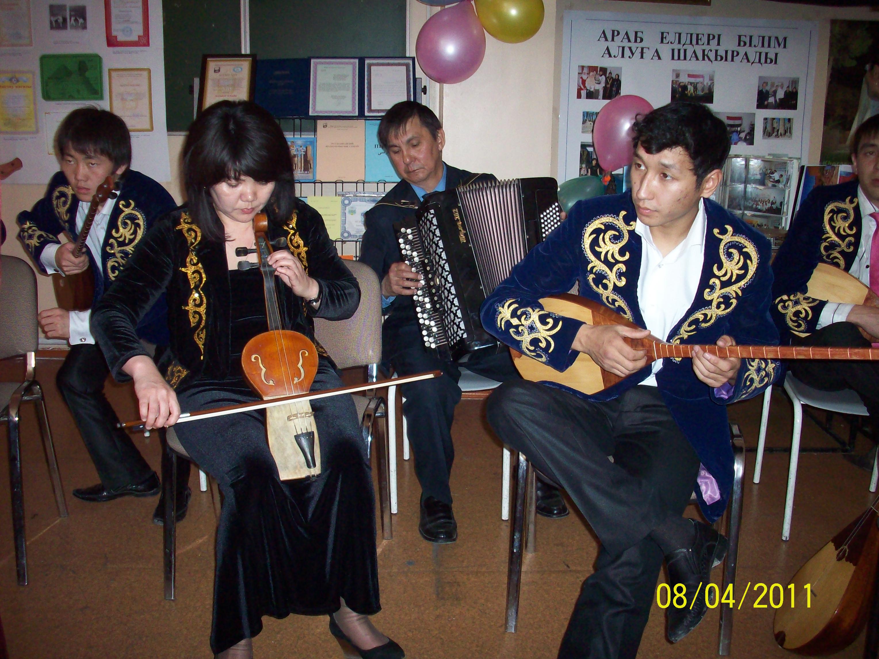 08.04.2011 День восточной филологии. 8 апреля в КазНПУ им.Абая прошёл день открытых дверей кафедры восточной филологии. Кафедра обеспечивает преподавание следующих восточных языков: турецкий, арабский, персидский, китайский, корейский и японский. На филологическом факультете данные языки изучаются в качестве основного. Главные направления научно-исследовательской работы кафедры - история современных восточных языков, стилистика, диалектология, культура речи, методика обучения восточным языкам. На кафедре восточной филологии сложились устойчивые традиции, направленные на поддержание высоких стандартов в области образования и научных исследований, сохранения надлежащего уровня преподавания и соблюдения профессиональной этики, достижения гибкости и последовательности учебных программ. Именно для ознакомления с восточной кафедрой и привлечения абитуриентов, был проведён день открытых дверей. Организатором мероприятия выступила кандидат педагогических наук, доцент Тагиева Н. А. Она проводила отбор талантов среди студентов ВУЗа, готовила сценарий, вместе с учениками придумывала видеосюжеты и викторины. Студенты и преподаватели, словно одна семья - с трепетом ждали этого события. Ведь день открытых дверей - это путь к успеху, как для кафедры восточной филологии, так и для всего университета. И вот день открытых дверей настал. С самого утра, словно пчёлки, все трудились в главном зале ВУЗа. Кто-то надувал шары и украшал аудиторию плакатами и флагами восточных стран, а кто-то повторял слова для выступления и настраивал народные инструменты. К началу праздника зал был полон, приглашённые абитуриенты из 5 школ с интересом поглядывали на активных студентов. Расспрашивали об университете, об учёбе, просили рассказать что-нибудь на языках, которые студенты учат. «Я тоже хочу учить китайский»- с искоркой в глазах сказала одна из школьниц. Быть может, именно день открытых дверей, поможет школьникам определиться с выбором, как профессии, так и университета. Представление - а точнее праздник, именно так хотелось назвать день открытых дверей, потому что атмосфера радости сохранялась на протяжении всех выступлений. Участниками праздника были как студенты, так и преподаватели. Согласно программе, в первую очередь был представлен видеоролик о деятельности КазНПУ им. Абая, где рассказывалась история университета, его заслуги и достижения студентов. Представлен перечень специальностей, анализ работы общеуниверситетских кафедр и факультетов. Это помогло пришедшим школьникам ознакомиться, как с восточной кафедрой, так и с деятельностью всего университета. Музыкальное сопровождение осуществлял фольклорно-этнографический ансамбль университета, под руководством Матбуса Ж.Б. и Бектенбетовой К.А. Студенты всех языковых отделений представили номера на профильных языках, пели песни и танцевали танцы «своих» народов. Отделение китайского языка помимо песен организовали викторину «Китай - Восток - дело тонкое», тем самым проверив, насколько нынешние школьники знакомы с культурой современного Китая. А студенты арабского языка, в свою очередь представили юмористический скетч «Смерть денег», рассмешив публику и окончательно расположив её к себе. В заключении концерта, состоялась фотосессия в праздничных, народных костюмах. День восточной 