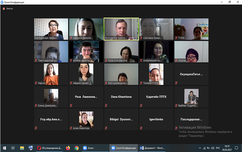 26 марта 2021 года состоялся двенадцатый вебинар Виртуальной лаборатории по инклюзивному образованию. Тема - «Внедрение и развитие инклюзивной формы обучения в Украине». Организатор и модератор вебинара - директор Ресурсного консультативного центра по инклюзивному образованию для вузов РК КазНПУ имени Абая, профессор Зульфия Мовкебаева.