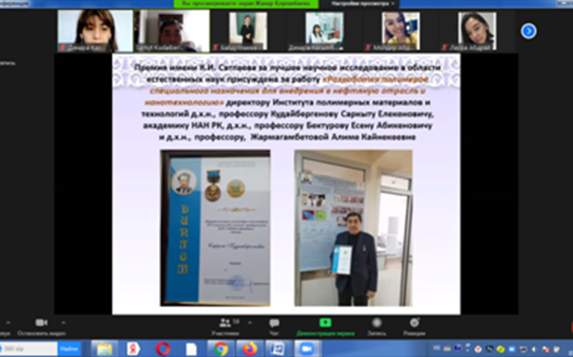 7 апреля 2021 года отделом науки, инноваций и международного сотрудничества Института естествознания и географии в рамках Месяца Науки проведен онлайн круглый стол «Путь в науку» с участием директора Института полимерных материалов и технологий, профессора Саркыта Кудайбергенова.