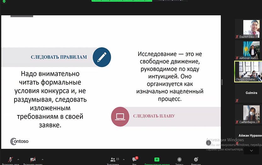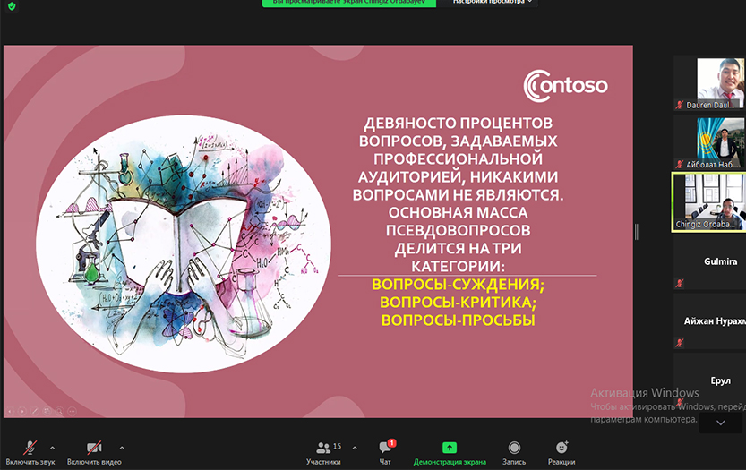 Іс-шара барысындағы алғашқы тақырып бойынша оқытушылар Абай атындағы ҚазҰПУ-дың жас ғалымдарына арналған жыл сайынғы ғылыми жобаға қатысты барлық талаптарға жіті тоқталып, оның басты құндылығы неде екенін жан-жақты түсіндіріп өтті. Жоспар бойынша келесі тақырып барлық оқытушыларды толғандырып жүрген Скопус базасы туралы болды. Мұнда оқытушылар мен магистранттарға қажетті тың ақпараттар берілді. Жас ғалымдар тарапынан көптеген сауалдар мен ұсыныстар жолданды. Олар семинардың маңыздылығын атап өтіп, осындай шаралар жиі өткізілсе екен деген тілектерін білдірді.
