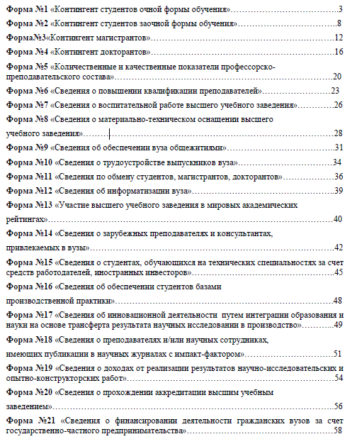 Перечень форм отчетности департамента высшего и послевузовского образования