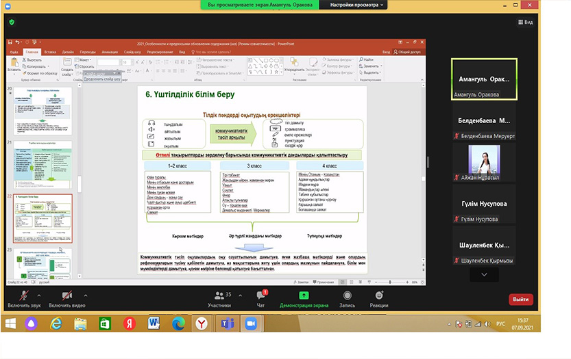 Преподаватели центра Оракова А.Ш., Корнилова Т.Б. и Белденбаева М.Т. ознакомили слушателей с нормативно-правовыми документами, которыми руководствуются в организации и управлении учебно-воспитательным процессом, методами эффективного и активного обучения, способами дифференциации, новыми требованиями к критериальному оцениванию.