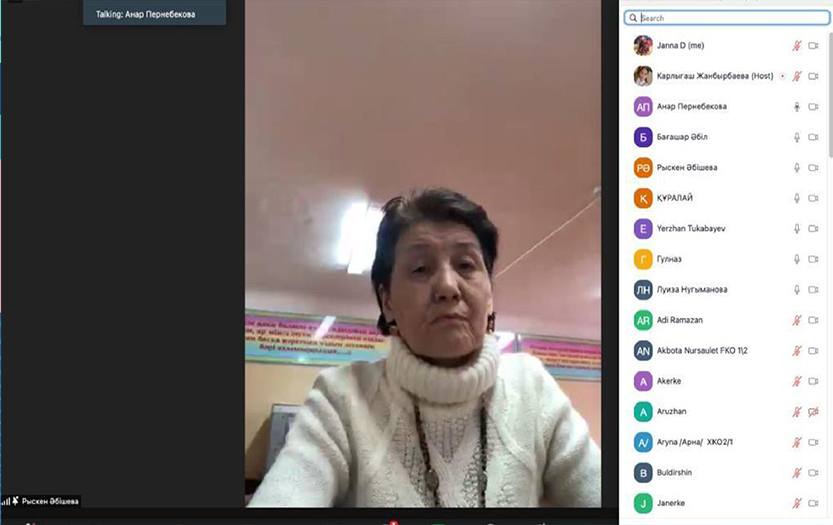 На первом этапе встречи педагог, член Союза журналистов Казахстана Абишева Рыскен отметила, что язык - опора нашей независимости и подробно ответила на вопросы слушателей, остановившись на проблемах развития государственного языка и путях их решения.