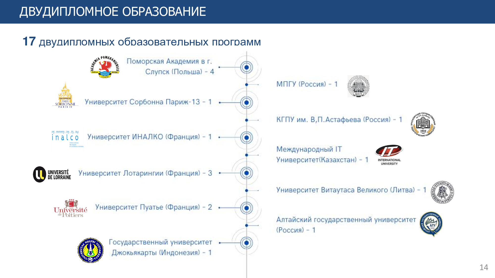 Учебная и научная работа обучающихся организована в 7 институтах: Педагогики и психологии, Математики, физики и информатики, Филологии, Искусств, культуры и спорта, Естествознания и географии, Истории и права, Сорбонна-Казахстан.