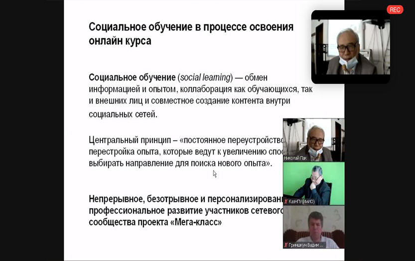 Модератором мероприятия был заведующий Международной научной лабораторий проблем информатизации образования и образовательных технологий КазНПУ имени Абая Бидайбеков Е.Ы. Спикерами - Балыкбаев Т.О., ректор КазНПУ им. Абая, Григорьев С.Г., заведующий кафедрой информатики и прикладной математики Московского городского педагогического университета (Россия), Гриншкун В.В., заведующий кафедрой информатизации образования Института цифрового образования МГПУ(Россия), Пак Н.И., заведующий кафедрой информатики и информационных технологий в образовании Красноярского государственного педагогического университета им. В.П.Астафьева (Россия), Заславская О.Ю., профессор кафедры информатизации образования Института цифрового образования МГПУ (Россия), Босова Л.Л., заведующая кафедрой теории и методики обучения информатике МГПУ (Россия). От нашего университета также выступили Ошанова Н.Т., заведующая кафедрой информатики и информатизации образования, Камалова Г.Б., и.о. профессора кафедры информатики и информатизации образования, Нурбекова Ж.К., директор и основатель стартап ИТ-компании «Digital Experts Group», профессор кафедры информатики и информатизации образования, Конева С.Н., и.о. профессора кафедры информатики и информатизации образования, Курмангалиева Н.А., старший преподаватель кафедры информатики и информатизации образования Жабаев Е.Х., докторант этой же кафедры.