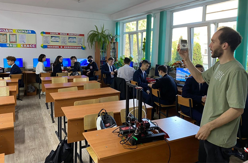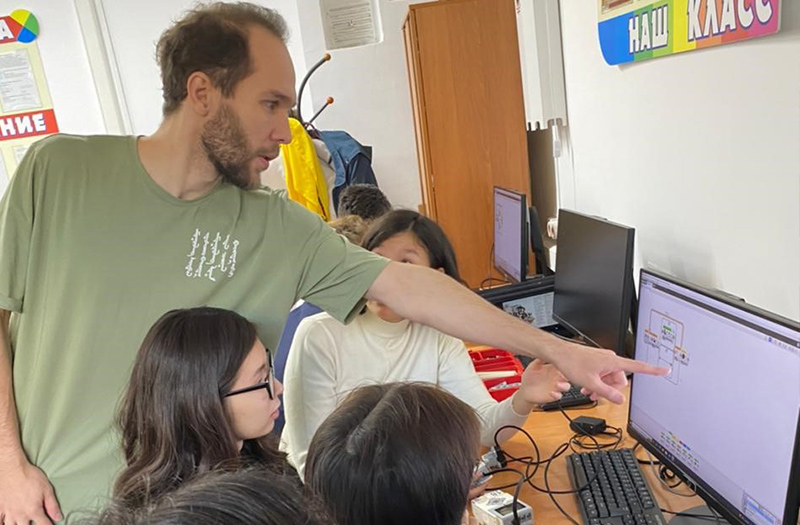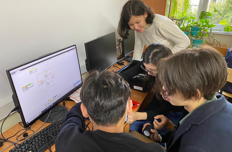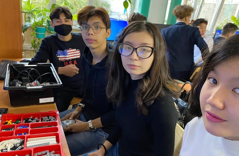 11 октября 2022 года в КГУ «Лицей №134» в рамках школьной недели информатики и робототехники были проведены мастер-классы для учащихся 9-х классов. Под руководством тренера Т.Носова школьники сделали свои первые шаги в этой IT-индустрии. В мастер-классе участвовали студенты 3-го и 4-го курсов специальности «Информатика» русского отделения, руководитель практики - профессор университета Абдулкаримова Г.А. После небольшого вступления - знакомства с основными понятиями робототехники, конструкциями робота и особенностями управления им - участники разделились на команды и приступили к сборке своего первого робота. Готовы были помочь ученики 11-го класса, члены школьного кружка, победители и участники различных соревнований по робототехнике, но команды самостоятельно справились с заданием. В ходе мастер-класса участники познакомились с возможностями программирования и управления роботом. Собрав свое детище, участники программируют его и тестируют на наличие программных ошибок. Команды представили свои проекты и продемонстрировали управление своим роботом.