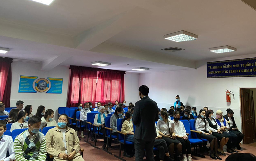 18 ноября 2021 года в Каскеленском Гуманитарно-Техническом колледже, находящемся в г. Каскелен Алматинской области, прошел тренинг-семинар «Дорога в будущее». Участниками мероприятия были студенты выпускных групп и преподаватели данного учебного заведения. Ведущий семинара - руководитель Отдела маркетинга Института педагогики и психологии КазНПУ имени Абая, старший преподаватель Бауыржан Жанкушков.