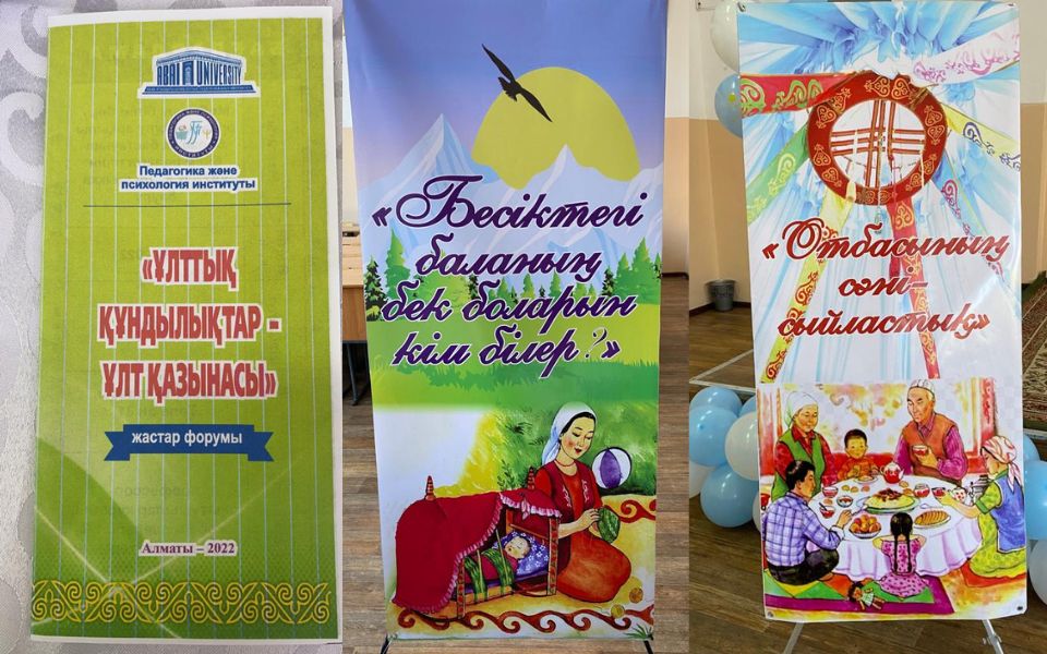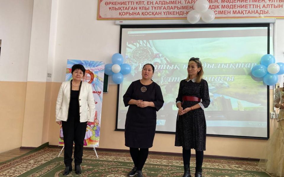 Руководитель проекта А.Е.Жумабаева, участники проекта Р.Ж.Базарбекова и А.С.Стамбекова акцентировали внимание на важности национальных ценностей для воспитания подрастающего поколения.