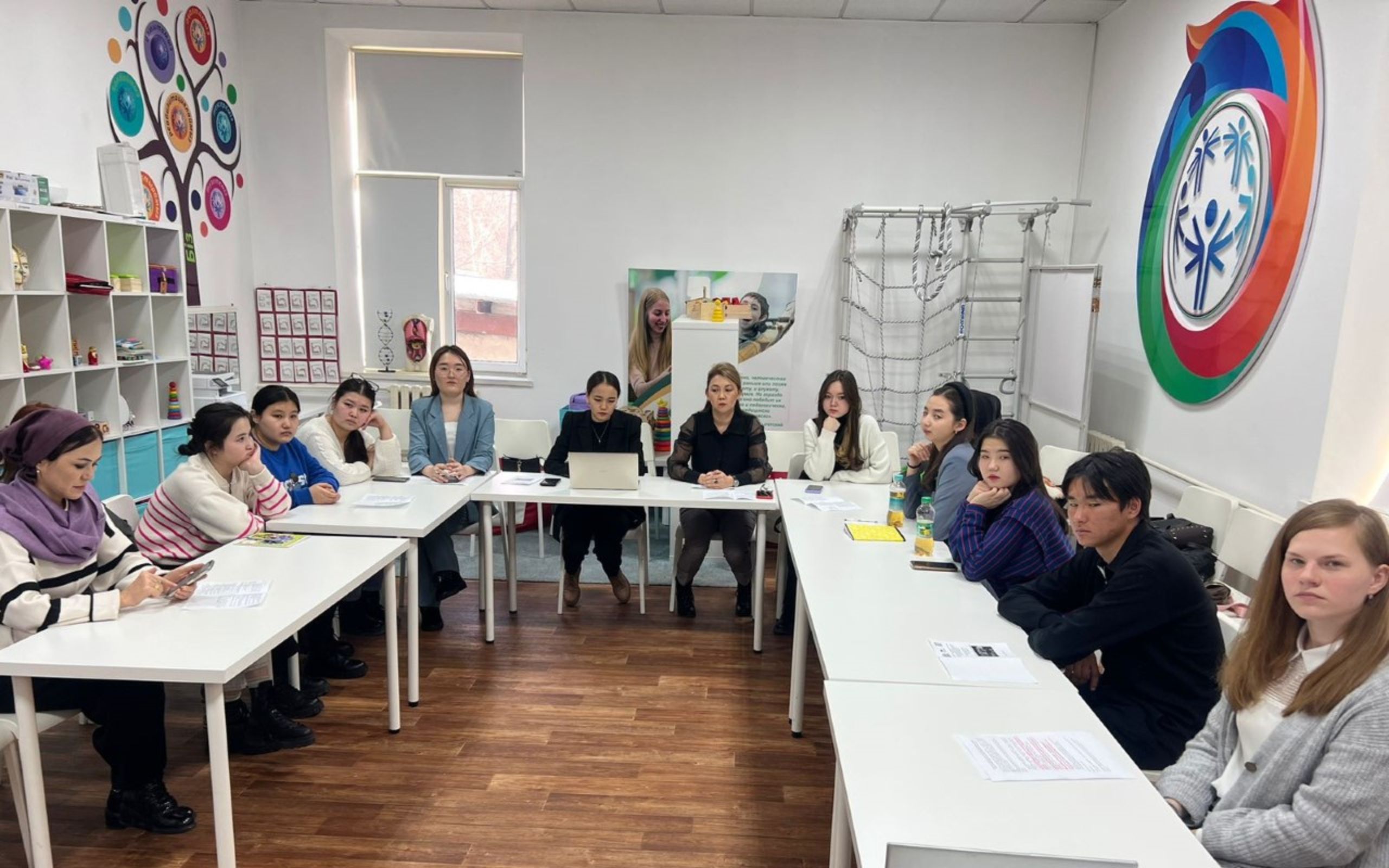 Модераторы мероприятия - А.Калиаскарова, докторантка 3-го курса специальности «Педагогика и психология» и Т.Марченко, студентка 2-го курса специальности «Специальная педагогика: логопедия».