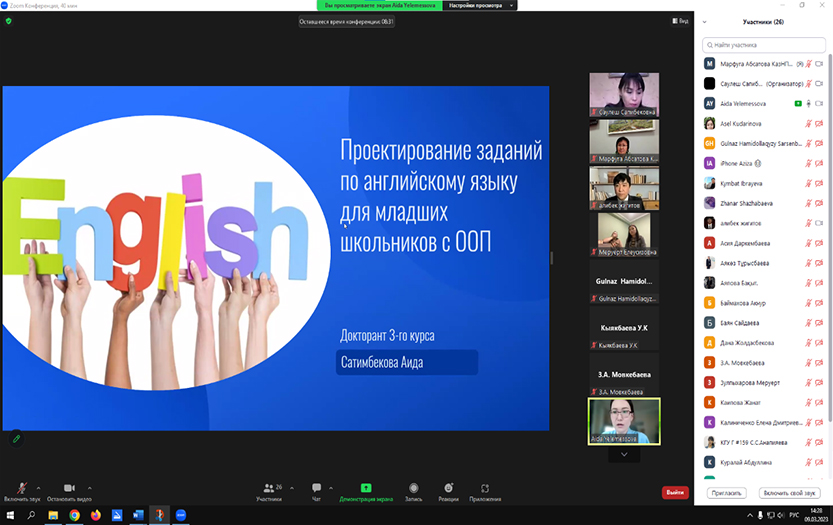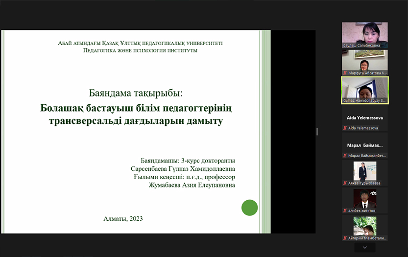 9 марта 2023 года был проведен научный семинар докторантов Института педагогики и психологии. Цель - обмен научной информацией о результатах исследований и инновационной работе соискателей, а также опытом проведения научных изысканий.