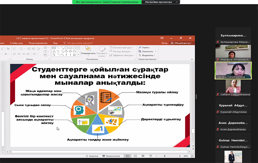 Научный вебинар под руководством заместителя директора по науке Абсатовой М.А. позволил докторантам обменяться мнениями и повысить познавательный уровень.