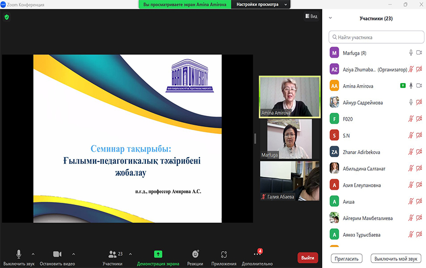 В рамках Декады науки 6 апреля 2023 года Институт педагогики и психологии организовал очередной онлайн-лектории, где лектором выступила профессор КазНПУ имени Абая Амина Амирова на тему «Проектирование научно-опытного эксперимента».