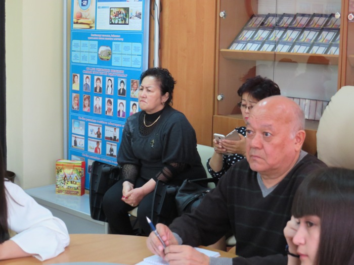 Лариса Агеева, к.п.н, ассоциированный профессор Казахского государственного женского педагогического университета, в своем выступлении отметила необходимость подобного сотрудничества. Студенты разных вузов одной специальности должны расти в своей профессии вместе, потому что в школе они будут работать бок о бок и сегодняшнее их сотрудничество благотворно повлияет на них в будущем. Они, студенты, смотрят друг на друга, учатся друг у друга, помогают друг другу.