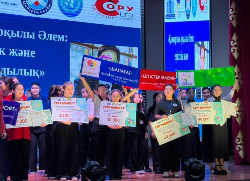 Первое место: - Команда «Арнайы Support» специальность 6В01901-Специальная педагогика (IP), 50.000 тенге. Второе место: - Команда «Үміт шамы» специальность 6В01802 - Социальная педагогика (IP), 40.000 тенге. - Команда «Жан Тұғыры» специальность 6В01109-Психология (ІР), 40.000 тенге. Третье место: - Команда «Ізгі істер әлемі» специальность 6В01204 - Дошкольное образование (IP), 30.000 тенге. - Команда «Шапағат» специальность 6В01308-Начальное образование (IP), 30.000 тенге.