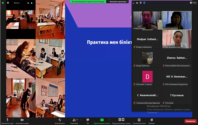 16 марта 2022 года старшие преподаватели кафедры иностранных языков Института филологии и полиязычного образования Нурекешова Г.Р., Султанкулова Ш.У., Таженова А.С. и Тлеубай С.Т. провели в режиме онлайн профориентацию для выпускников школ, в которых студенты 4-х курсов проходили производственную практику. Тема - «Школа и практикант: специальность, профессиональная направленность, опыт».