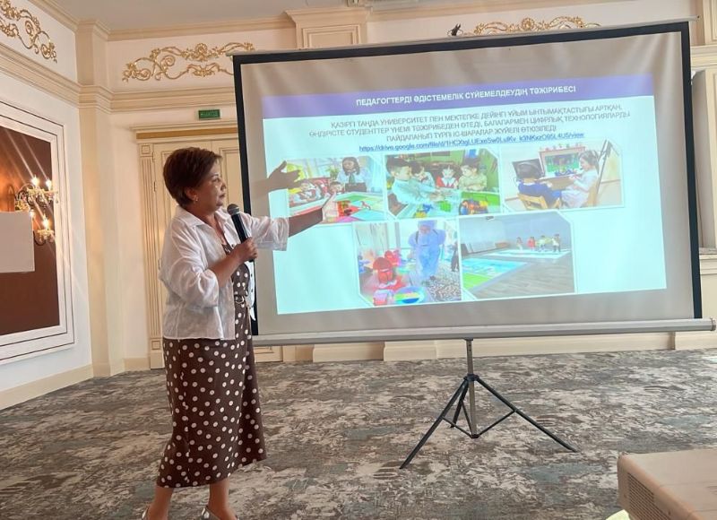 В своем выступлении Гулбану Абитова выделила основные аспекты методической поддержки цифровой среды, более подробно остановилась на основных компонентах цифровой компетентности педагогов дошкольной организации. Вместе с тем были выделены возможности цифровых ресурсов в организации деятельности дошкольных организаций и представлены цифровые платформы для педагогов, как «AlmatyKids.kz», TEACHERS LAB.