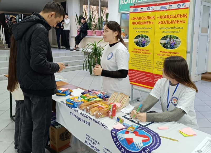 Благотворительная акция «Дорогою добра» С 6 ноября по 13 ноября 2024 года при поддержке Департамента по социальной и молодежной политике под руководством ассоциированного профессора Ширинбаевой Гулбахиры по социально-педагогическим направлениям волонтерского клуба «Мейірім» студенты-волонтеры специальности «6В01801-Социальная педагогика», «6В01201-Дошкольное обучение и воспитание», «6В090200-Туризм» провели благотворительную ярмарку «Дорогою добра».