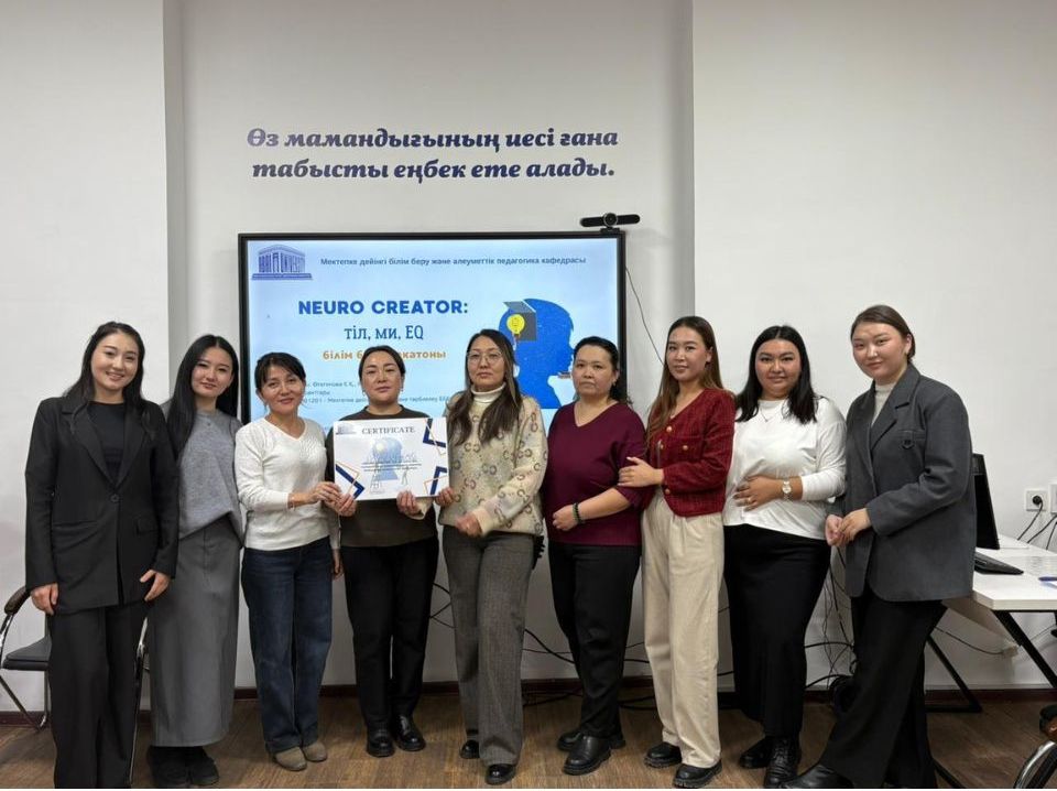 26 января 2026 года кафедра дошкольного образования и социальной педагогики факультета Педагогики и психологии Казахского национального педагогического университета им. Абая в рамках темы научных исследований докторантов 1 - 2 курса образовательной программы 8D01201 - Дошкольное обучение и воспитание Утегеновой Е. К., Капсановой Г. Б. (Научные консультанты: PhD., и.о. ассоц. профессор А. И. Булшекбаева; PhD., ассоц. профессор Г. Т. Абитова) был организован хакатон.Хакатон организован для магистрантов и докторантов 1 курса образовательной программы 7М01201/8D01201 – Дошкольное обучение и воспитание.Мероприятие торжественно открыла и выступила заведующая кафедрой дошкольного образования и социальной педагогики Кыякбаева У.К. В своем выступлении заведующая кафедрой отметила важность нейропсихологии и эмоционального интеллекта в сфере современного дошкольного образования и пожелала успехов в научно-практических поисках будущих специалистов дошкольных организаций.Хакатон отметил, что для молодых ученых это не просто соревнование, а площадка для разработки конкретных методических пособий для развития познания современного ребенка.В мероприятии приняли участие заведующий кафедрой дошкольного образования и социальной педагогики КазНПУ им. Абая, к. п. н., доцент., ассоц. профессор Кыякбаева У. К., д.п.н., профессор Бекмагамбетова Р. К., к.п.н., профессор Таубаева Г. З., к.п.н., профессор Н. О. Атемкулова PhD., доктора PhD, ассоц. профессора Абитова Г. Т., Алимбекова А. А., Булшекбаева А. И., доктор PhD Ахметова А. И., Еркебаева С. Ж., магистр Ауезова А. А.Основная цель хакатона состояла в том, чтобы подготовить авторские игровые модели для дошкольников с помощью нейролингвистических упражнений и инструментов эмоционального интеллекта (EQ).Данное мероприятие было направлено на раскрытие творческого потенциала докторантов и магистрантов, развитие цифровых и педагогических навыков. Докторантами Утегеновой Е. К., Капсановой Г. Б. представлена подготовленная презентация по теме исследований, а содержание углублено посредством совместного обсуждения.Участники прошли шесть динамических этапов и продемонстрировали свое мастерство. На этапе Identity & Brainstorming группы создали свои собственные эмблемы и предложили творческие способы активировать мозг ребенка с помощью простых предметов из «загадочной коробки».После небольшой лекции о мозге и эмоциях в Insight & Neuro-EQ Lab магистранты и докторанты разработали модели цифровых игр в конкретных областях. На этапе Smart Pitching каждая группа защищала свои авторские игровые модели.