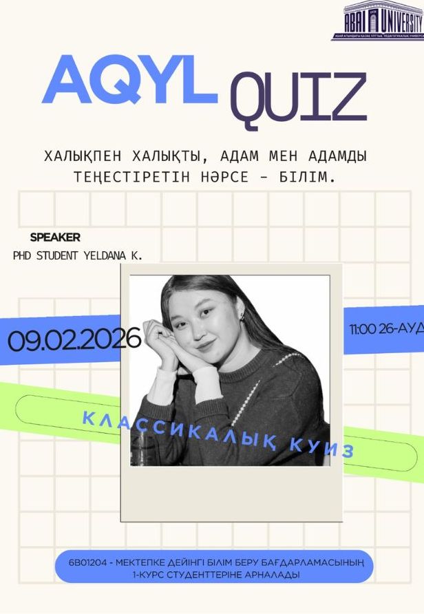9 февраля 2026 года докторант 1-го курса образовательной программы 8D01201 – Дошкольное обучение и воспитание кафедры дошкольного образования и социальной педагогики факультета Педагогики и психологии Казахского национального педагогического университета имени Абая Утегенова Е.К. в рамках темы научного исследования (научный консультант – PhD, и.о. ассоц. профессор А.И.Булшекбаева) организовала классический квиз.Интеллектуально-познавательная игра была организована для студентов 1-го курса образовательной программы «6В01204 - Дошкольное образование» с целью развития не только академической успеваемости, но и навыков критического мышления, находчивости и командной работы.Структура игры состояла из 4-х системных этапов («Разминка», «Подумай», «Медиа», «Ставка»), направленных на всестороннюю проверку когнитивных способностей обучающихся. Спектр вопросов охватывал историю университета и кафедры, дошкольную педагогику и психологию, методики Ахмета Байтурсынова, труды Назипы Кулжановой, наследие «матери казахского детского сада» Башен Баймуратовой, а также логические задания на развитие коммуникативных навыков и культуры речи. Ход игры: 1-й этап «Разминка»: Целью этапа стало ускорение мыслительных процессов и психологическая адаптация к соревнованию. Задания носили репродуктивный характер, проверяя оперативную память и скорость реакции студентов. 2-й этап «Подумай»: Аналитический раунд, где участникам предлагались сложные проблемные вопросы, требующие выявления логических связей. Этот этап выявил уровень функциональной грамотности и способность находить решения в нестандартных ситуациях. 3-й этап «Медиа»: Направлен на проверку медиаграмотности и культурного кругозора в современном информационном пространстве. Студенты продемонстрировали свою разносторонность через идентификацию визуальных образов, кинематографических отрывков и музыкальных фрагментов. 4-й этап «Ставка»: В финальном раунде команды выбирали стратегию риска, делая ставки из накопленных баллов. Это позволило оценить способность участников принимать рациональные решения и делать прогнозы в стрессовых условиях.В ходе напряженной борьбы студенты продемонстрировали не только глубокие знания, но и высокий уровень сплоченности. Команды-победители были награждены дипломами и отмечены благодарностями за активное участие в общественно-культурной жизни кафедры.