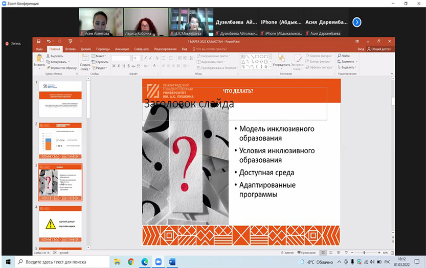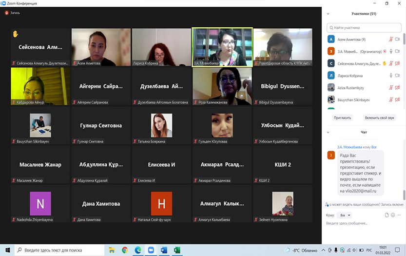 1 марта 2022 года в рамках деятельности Виртуальной лаборатории КазНПУ имени Абая и в соответствии с Планом работы Общественного совета базовой организации государств-участников Содружества Независимых Государств по подготовке, переподготовке и повышению квалификации педагогических работников и специалистов в области инклюзивного и специального образования состоялся 17-й вебинар. Тема - «Актуальные проблемы специального дефектологического образования».