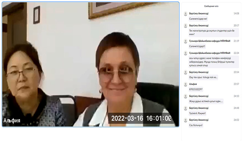 Кездесуге университеттің «Мансап» орталығының маманы Байғұтты Альфия және «Арыстан» мамандандырылған лицейінен директордың оқу ісі жөніндегі орынбасары Альфия Насыбуллина, әкімші Кундыз Гайбуллаева, сонымен қатар Математика, физика және информатика институтының бакалавр және магистратура бітіруші жас мамандары қатысты.