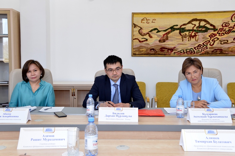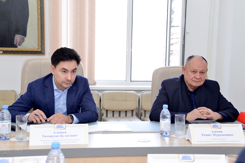 6 апреля 2022 года в КазНПУ имени Абая прошла встреча руководства Университета во главе с председателем Правления - ректором Дарханом Биляловым и проректором по стратегии, цифровизации и интернационализации Актрлкын Кулсариевой с делегацией Казанского федерального университета - проректором по образовательной деятельности Алишевым Тимирханом и советником ректора данного вуза по Средней Азии Азимовым Рашитом.