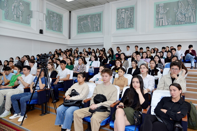 Мероприятие, посвященное 1 мая - Дню единства народа Казахстана, открыл директор Департамента по академическим вопросам Хайрулла Жанбеков. Лекцию провели специально приглашенные почетные гости - члены Совета Ассамблеи народа Казахстана: председатель Ассоциации греческих обществ Казахстана «Филия» Иорданиди Георгий и заместитель руководителя турецкого этнокультурного объединения «Ахыска» Касимов Казакбай. Они подробно осветили задачи, поставленные Президентом РК К.Токаевым в его новом послании, и поделились своим мнением по их реализации. В завершение с заключительным словом выступила заведующая кафедрой Ассамблеи народа Казахстана Шахарман Гулжихан. В лекции также приняли участие преподаватели кафедры Ассамблеи народа Казахстана Джайнакбаева Г.Т., Оспанова Р.Р. и первокурсники университета.