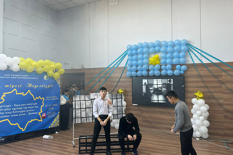14 декабря 2023 года в рамках празднования 95-летия нашего университета и в честь Дня независимости РК в Институте естествознания и географии состоялось праздничное мероприятие «Елдіктің тірегі - Тәуелсіздік», проведенное студентами 3-го и 4-го курсов специальности «6В05301-Химия». Организатор - преподаватель кафедры химии Ахтаева Маржан.