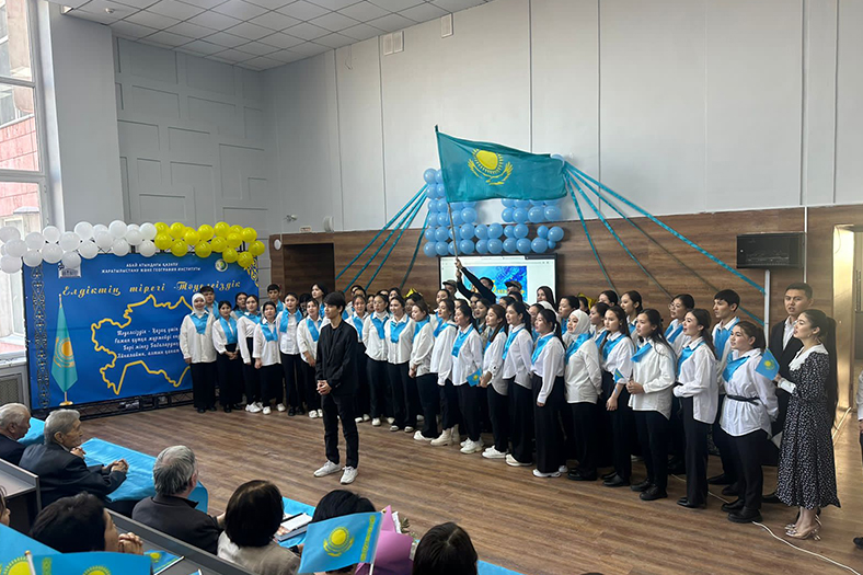 На празднике, который начался с Минуты молчания в память жертв борьбы за независимости, были показаны представление на историческую тему «Желтоксан - тәуелсіздік бастауы», патриотический танец «Я казах», также выступил хор из 80 студентов с песней «Атамекен».