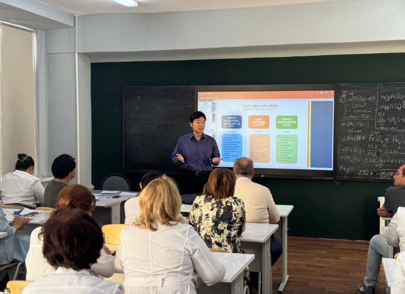 Анализ содержания ОП «Химия» с участием зарубежных учёных 3 октября 2024 года на кафедре «Химия» Факультета естествознания и географии были презентованы и проанализированы образовательные программы бакалавриата, магистратуры и докторантуры с участием зарубежных профессоров. Профессор Трабзонского университета Салих Чепни (Турция) рассказал о сходствах и различиях между образовательными программами турецкого вуза и программой специальности «Химия» Abai University.