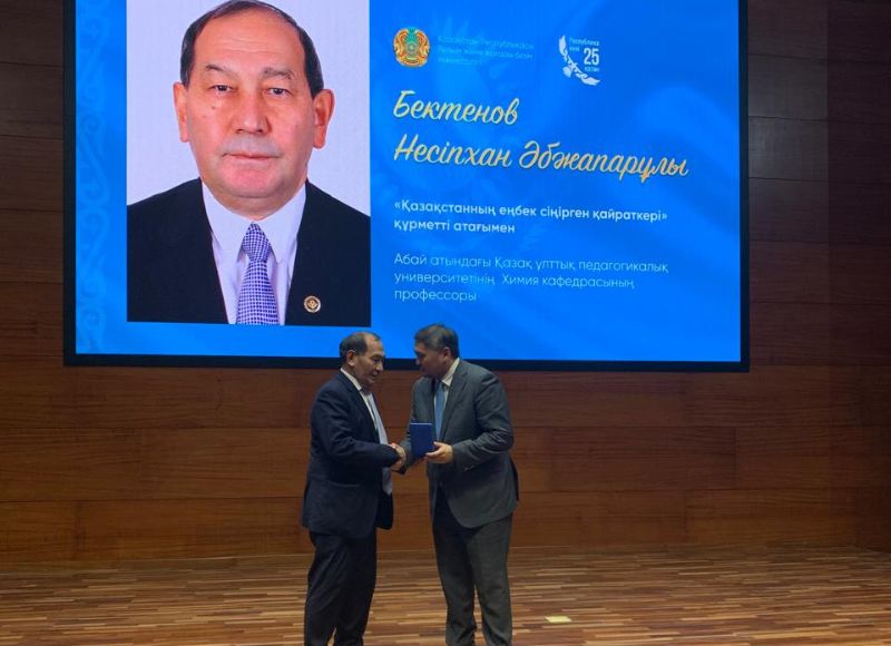 24 октября 2024 года за выдающиеся достижения в области образования и науки и выдающийся труд в Республике Казахстан академику, профессору кафедры химии Факультета естествознания и географии Несипхану Абжапаровичу Бектенову присвоено почетное звание «Заслуженный деятель Казахстана». Указ Президента Касым-Жомарта Токаева от 16 октября 2024 года (№ 5176) по случаю Дня Республики.