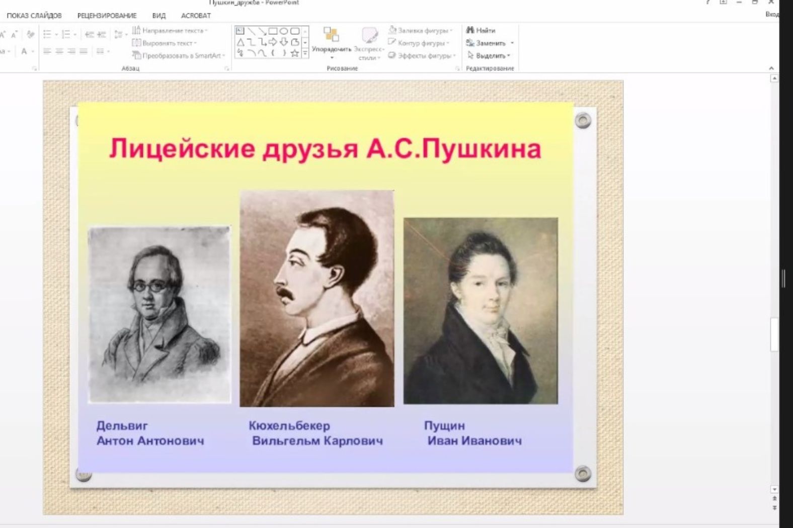 Десятиклассники лицея под руководством учителя русского языка и литературы Марины Асылбековой и классного руководителя Ольги Стрельцовой подготовили литературную композицию о творчестве поэта, прочитали его стихи. Но еще больше о личности А.С. Пушкина, о том, что для поэта гражданская служба была служением Отечеству, стране и народу, участники встречи узнали из рассказа Эдуарда Узенева, ученого секретаря Государственного мемориального историко-литературного и природно-ландшафтного музея-заповедника А.С.Пушкина «Михайловское» (Пушкинский заповедник).