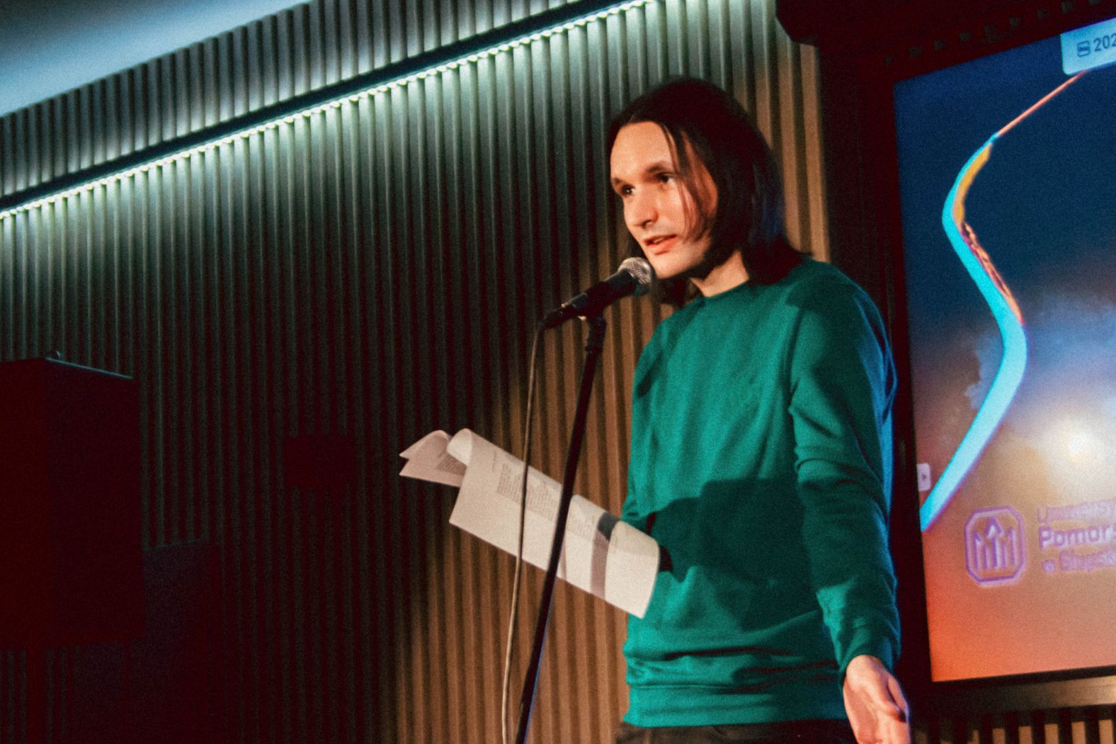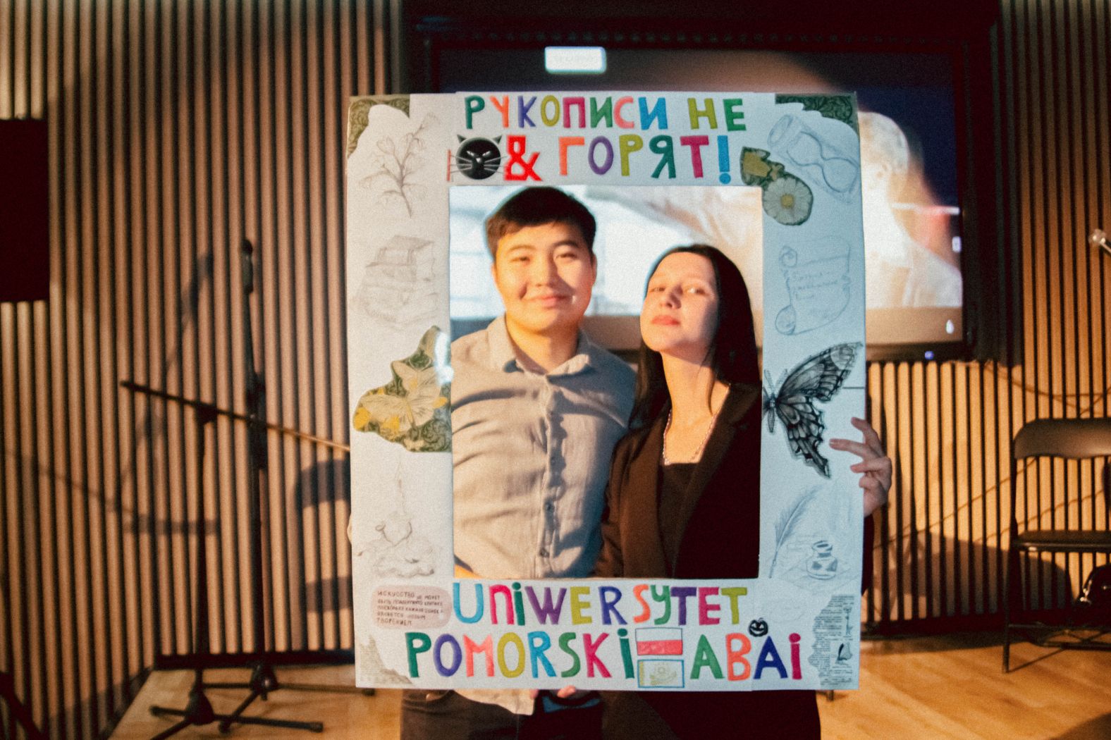 В студенческом клубе Поморского университета в Слупске (Польша) состоялся I Международный студенческий поэтический вечер. Мероприятие было организовано кафедрой неофилологии польского вуза при активном участии студентов кафедры русского языка и литературы КазНПУ имени Абая, которые на данный момент обучаются в Слупске по программе двудипломного обучения. Ведущими выступили Руфина Абузярова и Айдар Бигазиев. Соорганизаторами стали также члены научного студенческого кружка «Горизонты Славянства» Поморского университета, его опекуном является выпускник магистратуры КазНПУ имени Абая, а ныне доцент кафедры неофилологии, доктор PhD Максим Пономаренко.