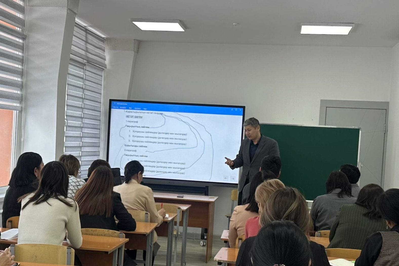 Прошли первые совместные мероприятия кафедры казахской литературы и методики обучения имени академика С.Кирабаева Института филологии и ее филиала, открытого на базе СОШ № 122. Заведующий кафедрой, выпускник программы «Болашак» Оспанов Едильбай прочитал лекцию учителям школы по предмету «Академическая письменность» и ответил на интересующие их вопросы. В целом на сегодняшний день одним из наиболее актуальных вопросов является повышение логических способностей учащихся и работа с текстом. Также эта дисциплина дает школьным учителям уникальную возможность написать эссе, приобщиться к научной работе. Кроме того, свободно владея знаниями и навыками в данной сфере, учителя-предметники имеют доступ к составлению заданий, связанных с возрастными особенностями учащихся, подготовке научных статей. Поэтому лекция по данной тематике в дальнейшем будет продолжена по отдельным направлениям.
