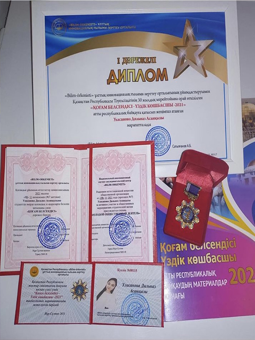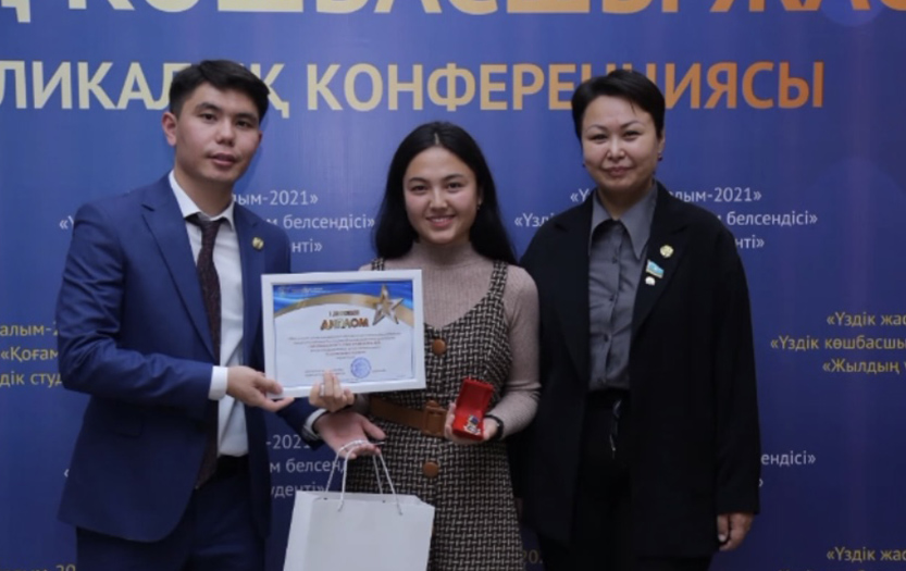 В конкурсе приняла участие студентка 3-го курса Института естествознания и географии по специальности «Химия-биология» Уласанова Дильназ, написавшая эссе на тему «Мои достижения в студенческой жизни». По решению жюри она стала победителем конкурса за вклад в развитие молодежной политики РК, награждена дипломом 1 степени, нагрудным знаком и специальным свидетельством.