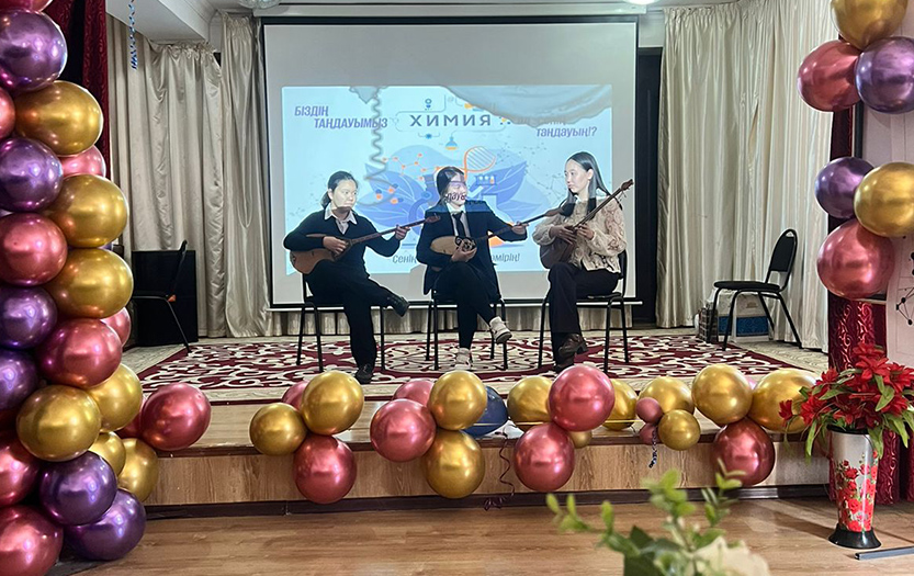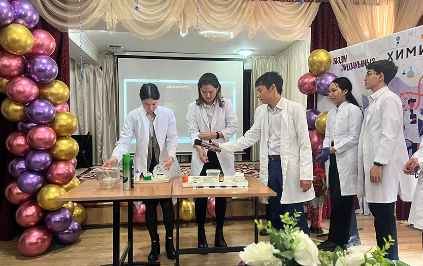 27 апреля 2022 года под руководством старшего преподавателя Корганбаевой Жанар студентами 3-го курса специальности «6В01510-Химия» Института естествознания и географии в школе-гимназии №59 было проведено профориентационное мероприятие на тему «Наш выбор - химия, а твой?».