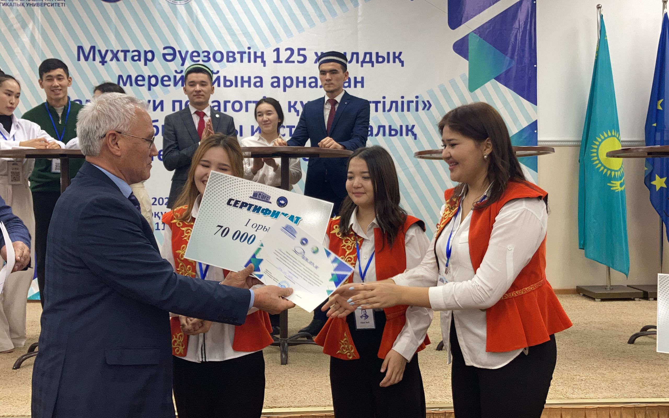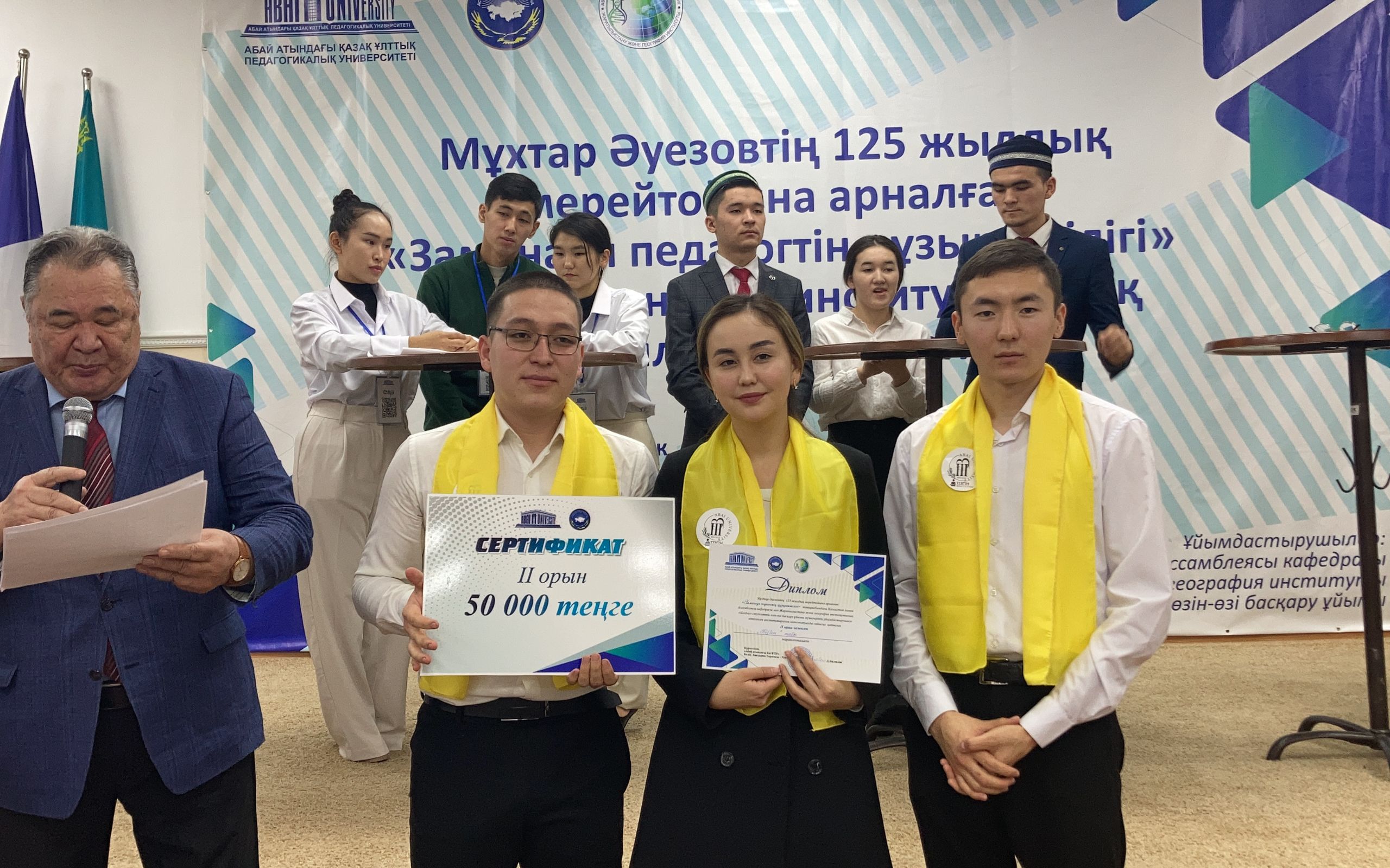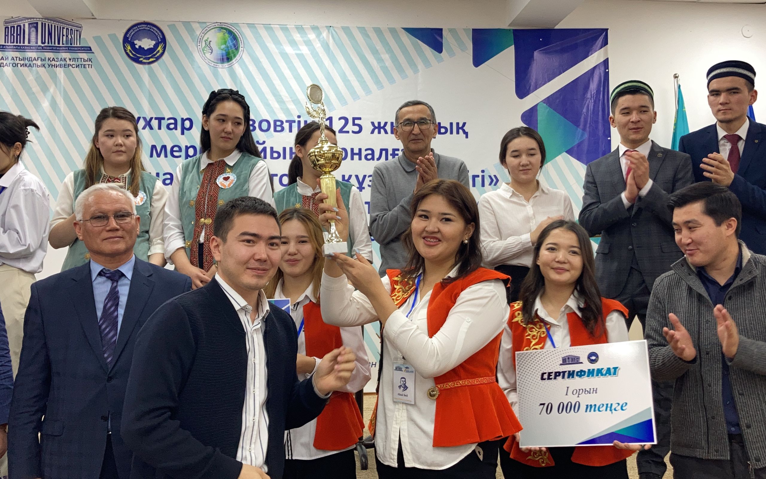 Интеллектуальное состязание состояло из трёх этапов, где в полной мере определились педагогические умения и знания студентов. Каждая группа, участвовавшая в конкурсе, обсуждала произведения Мухтара Ауэзова и размышляла о том, каким должен быть современный учитель. По итогам конкурса I место завоевала группа Института педагогики и психологии «Абай бол» («Будь Абаем» или «Берегись»); II - группа Института математики, физики и информатики «Тизгин» («Поводья»); III место заняла группа «Жас журектер» («Молодые сердца») Института филологии.