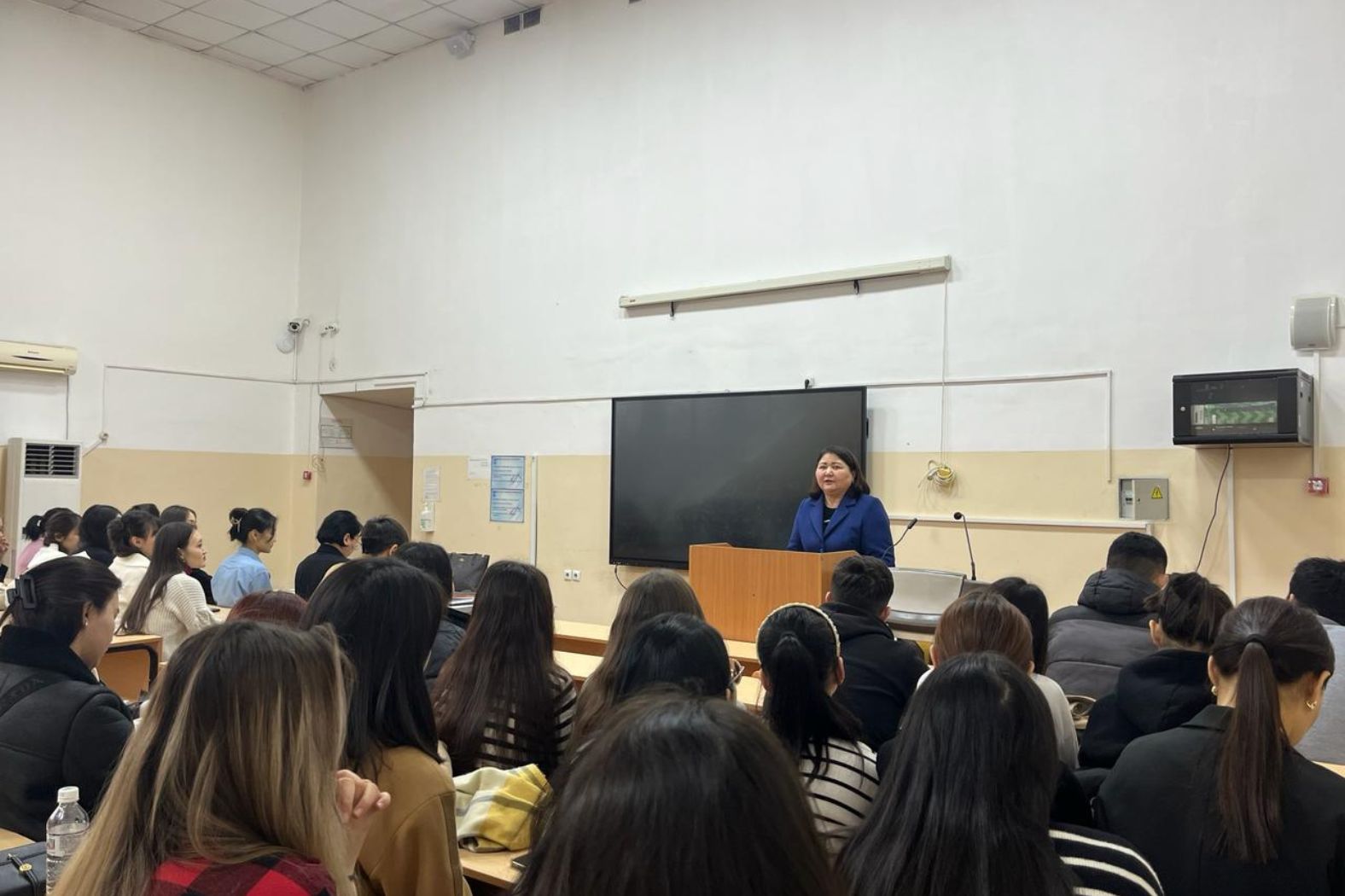Директор института К.Д.Каймулдинова поздравила студентов с началом практики, направленной на совершенствование и закрепление теоретических знаний, полученных ими во время учебы, и пожелала, чтобы они приобрели аналитические исследовательские навыки и в будущем стали хорошими специалистами.