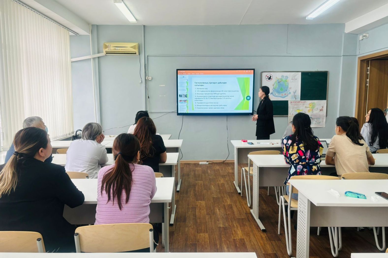 В Институте естествознания и географии 16 февраля 2024 года преподаватели кафедры биологии (направление физиология) - профессор З.Б.Тунгышбаева, старшие преподаватели Т.Т.Нуркенов, Г.К.Ташенова, Д.К.Кульжанова, Н.И.Отарова, преподаватели Ж.М.Жарылкасынова и Н.Б.Оразбаева - провели научный семинар «Влияние антибиотиков на морфологическое строение органов животных». Были заслушаны доклады магистрантов 2-го курса специальностей «7М01513-Биология» и «7М05101-Биология», представлены результаты научных исследований влияния антибиотиков на различные органы животных, в частности, на почки, печень, яички, сердце, желудочно-кишечный тракт.